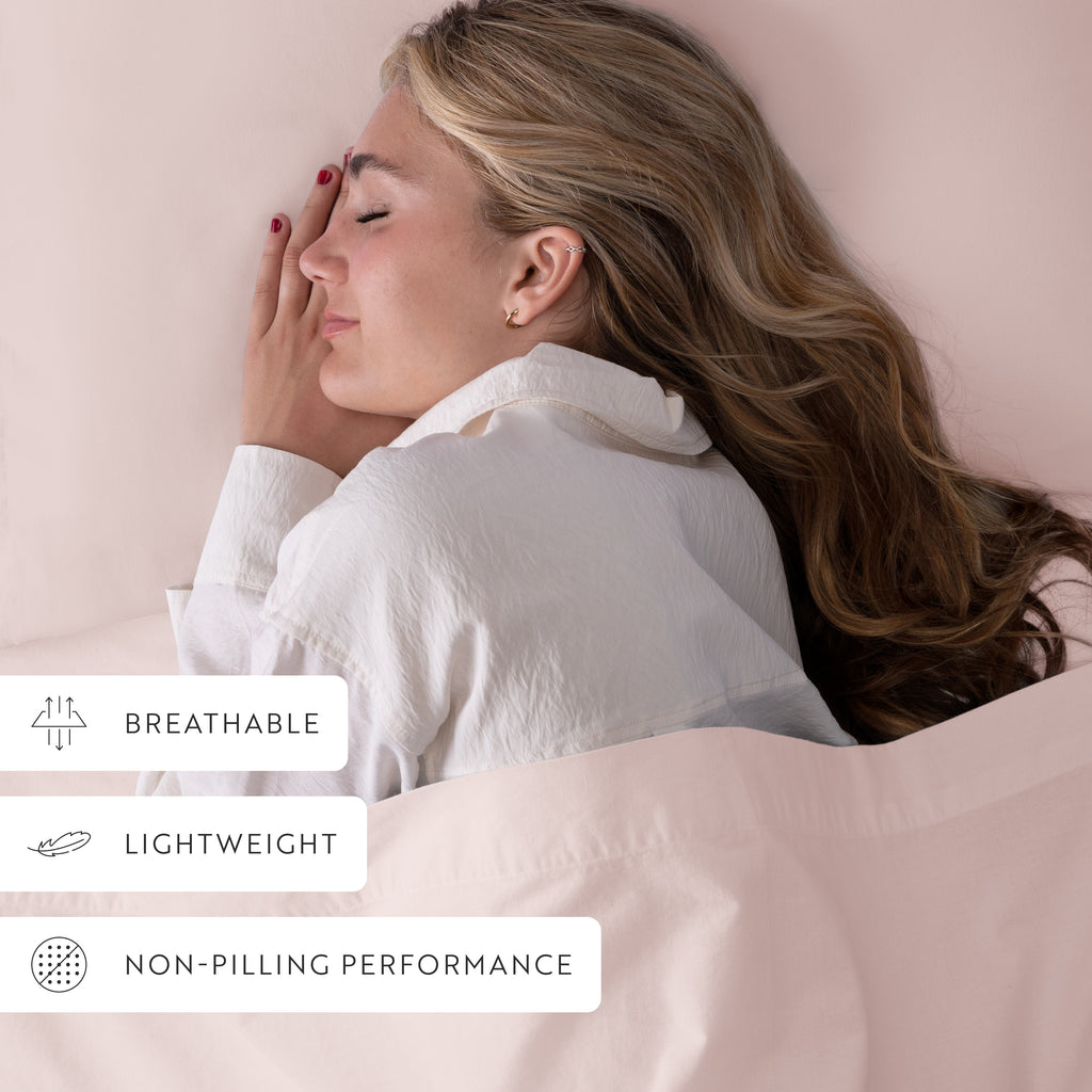 Discover unparalleled softness with our 100% cotton sheet set, expertly crafted from a lightweight, breathable percale weave. Pre-washed and brushed for exceptional comfort, these OEKO-TEX certified sheets stay naturally cool and wick moisture for a restful night's sleep. Combining hotel-quality luxury with lasting durability, they elevate your bedtime ritual with effortless sophistication. Slip into cool, cozy comfort, tonight!