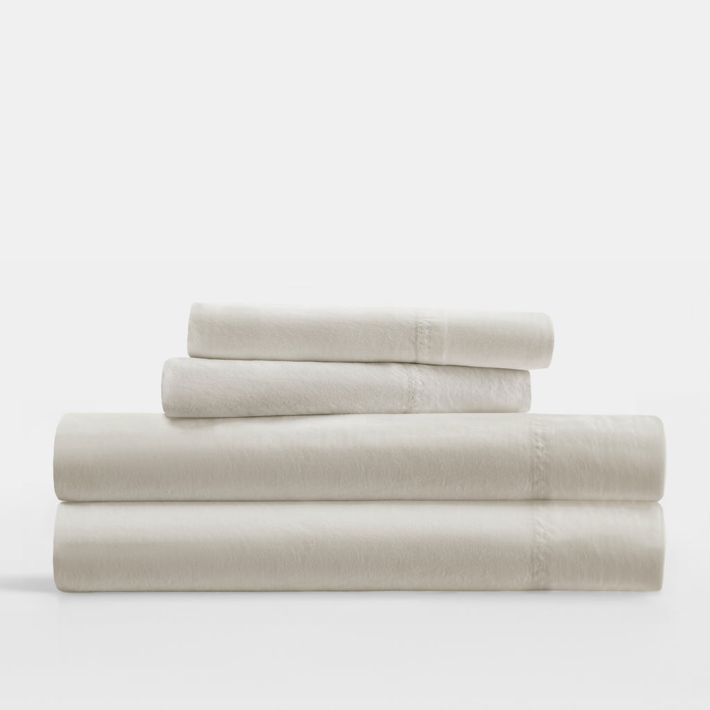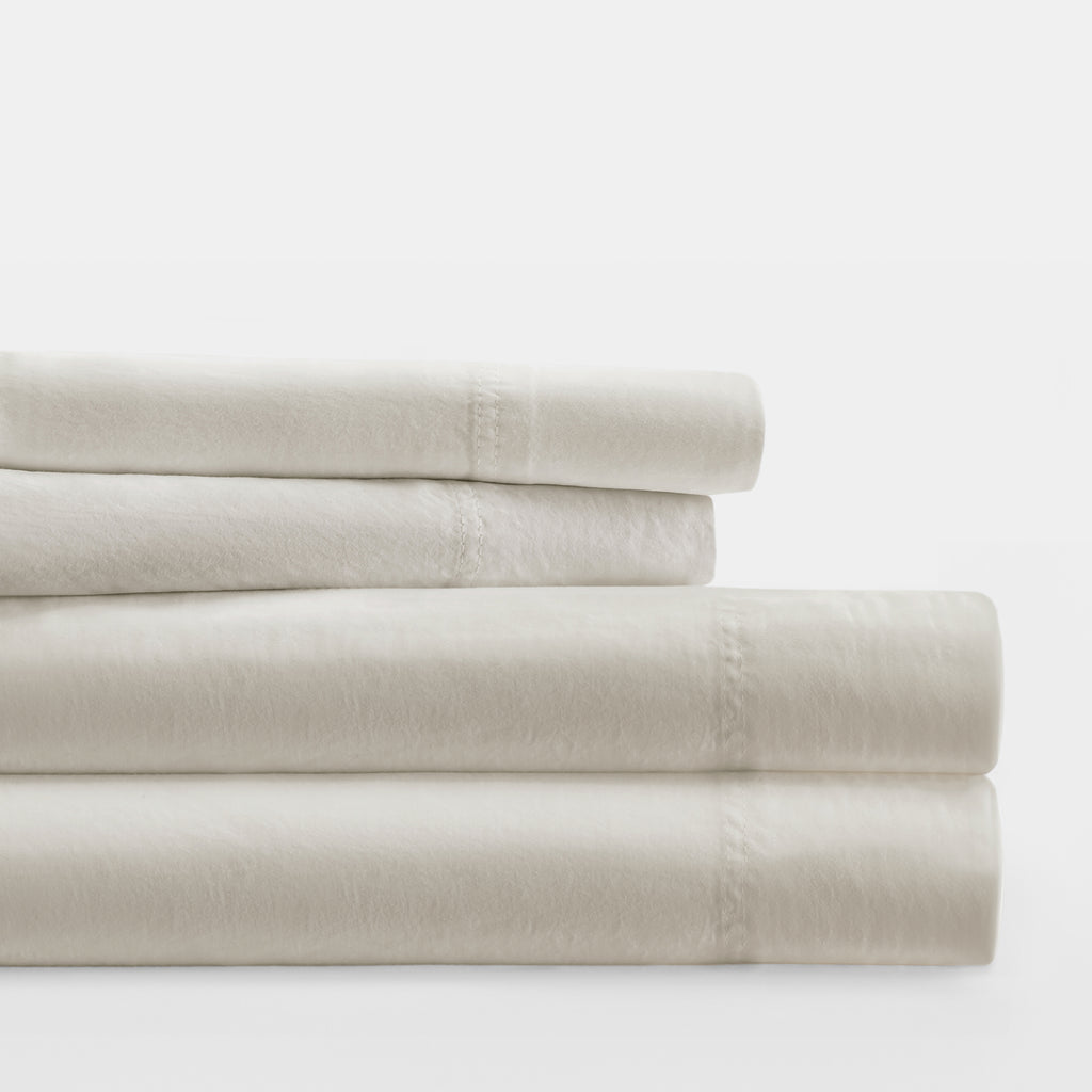 Experience the ultimate in comfort with our 4-Piece Long Staple 100% Cotton Sheet Set. Crafted from the finest long staple cotton, these sheets offer a luxurious touch that will transform your sleep experience. Meticulously washed for superior softness, they envelop you in a gentle embrace, ensuring a restful night's sleep. Indulge in the plushness and durability of long staple cotton, creating a haven of comfort in your bedroom. Upgrade to the epitome of luxury with our Long Staple 100% Cotton Sheet Set and elevate your sleep to new heights of serenity and bliss.