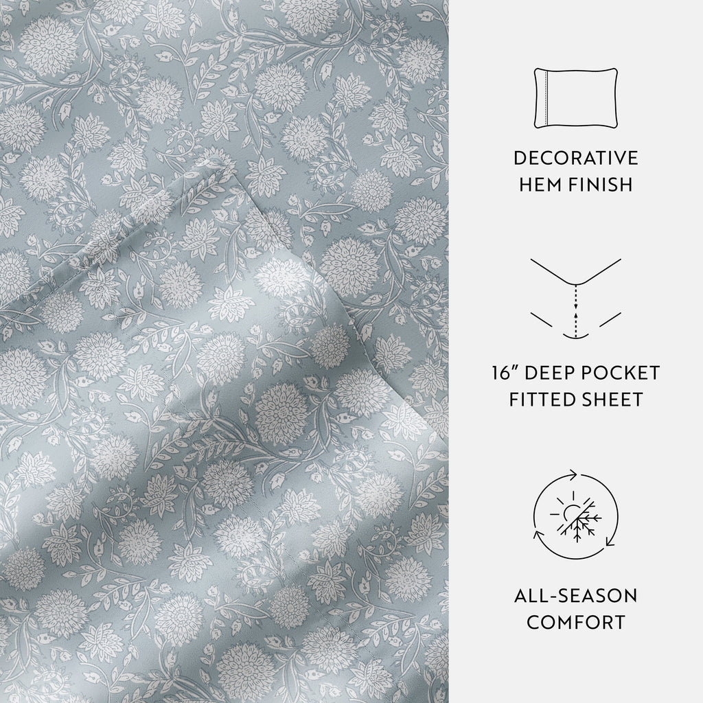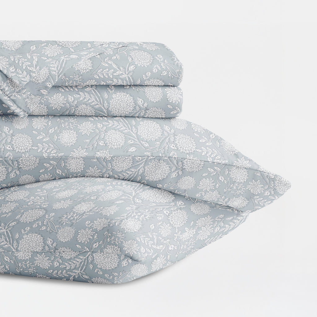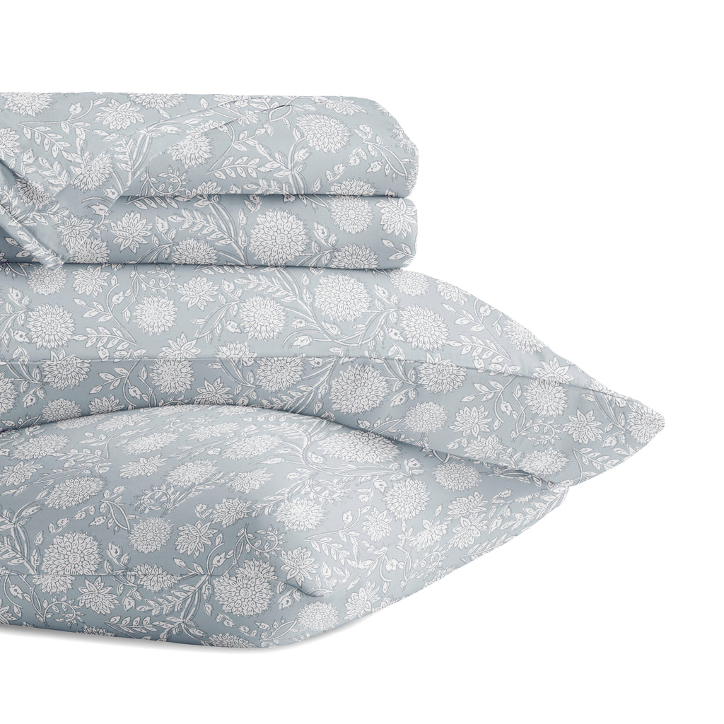 Experience the ultimate in comfort with our 4-Piece Long Staple 100% Cotton Sheet Set in beautiful patterns and colors. Crafted from the finest long-staple cotton, these sheets offer a luxurious touch that will transform your sleep experience. Washed and brushed for superior softness, they envelop you in a gentle embrace, ensuring a restful night's sleep. Indulge in the plushness and durability of long staple cotton, creating a haven of comfort in your bedroom. Upgrade to the epitome of luxury and elevate your sleep to new heights.