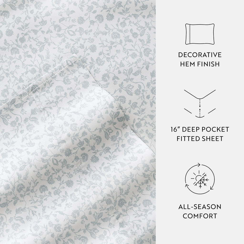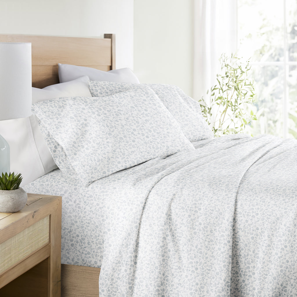 Experience the ultimate in comfort with our 4-Piece Long Staple 100% Cotton Sheet Set in beautiful patterns and colors. Crafted from the finest long-staple cotton, these sheets offer a luxurious touch that will transform your sleep experience. Washed and brushed for superior softness, they envelop you in a gentle embrace, ensuring a restful night's sleep. Indulge in the plushness and durability of long staple cotton, creating a haven of comfort in your bedroom. Upgrade to the epitome of luxury and elevate your sleep to new heights.
