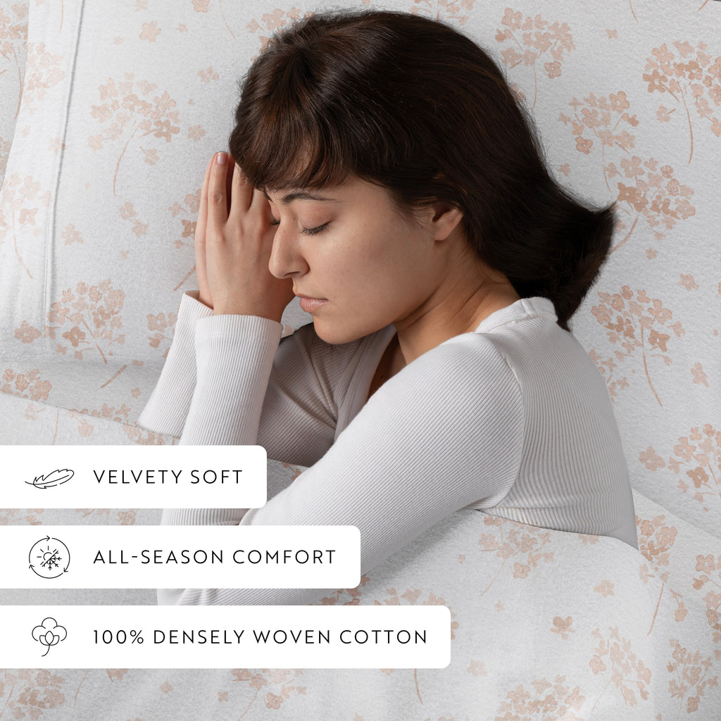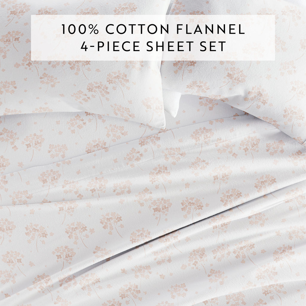 Flower Bunch 4-Piece 100% Cotton Flannel Sheet Set