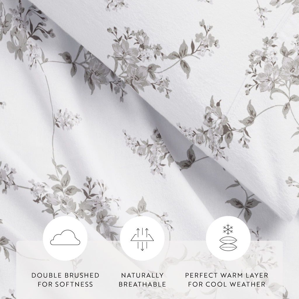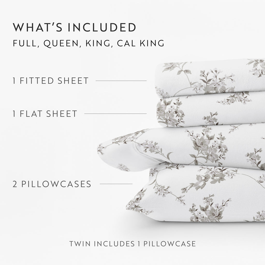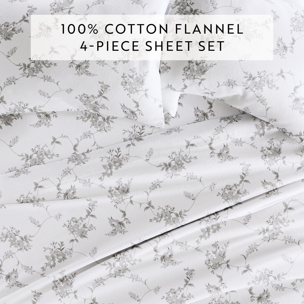 Sylvan Rose 4-Piece 100% Cotton Flannel Sheet Set