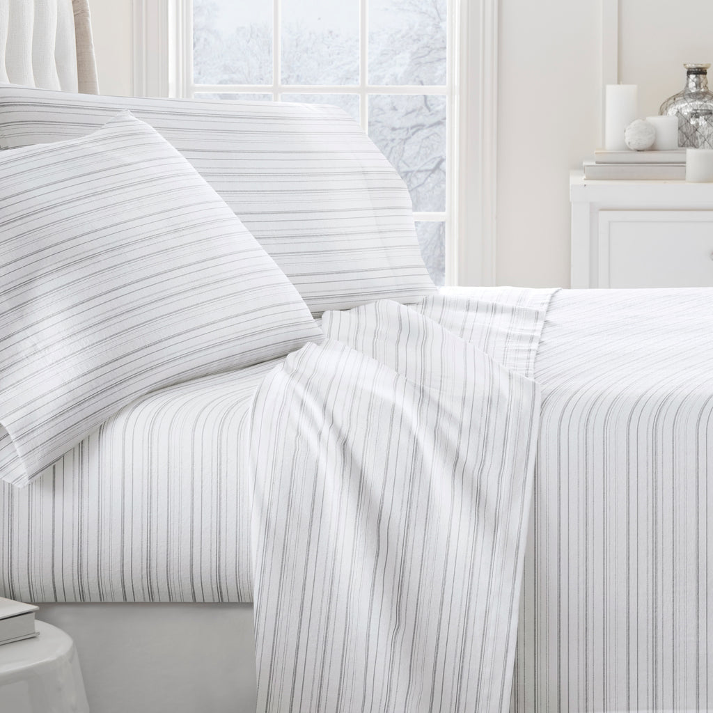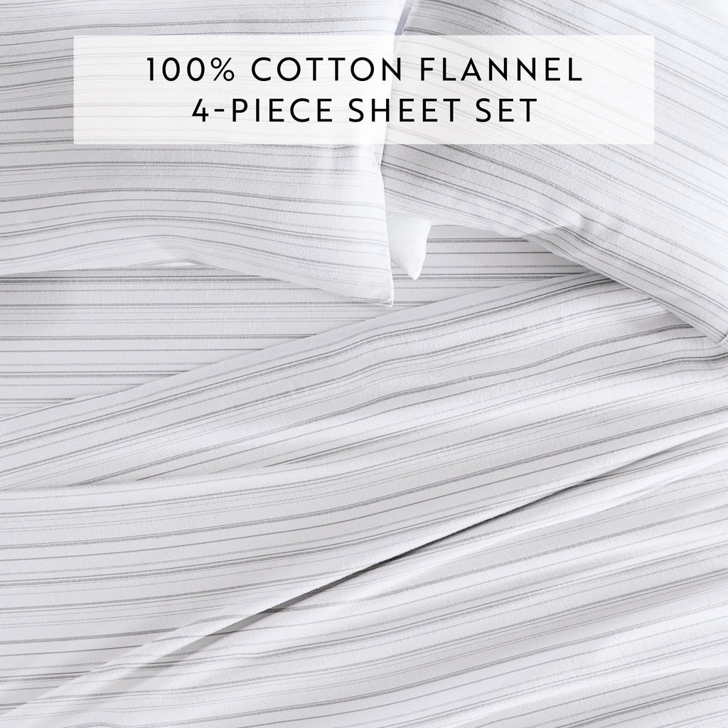 Weathered Stripes 4-Piece 100% Cotton Flannel Sheet Set