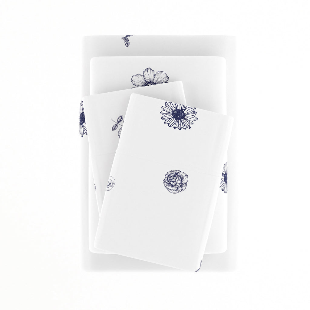 Indigo Flowers 4-Piece Patterned Sheet Set