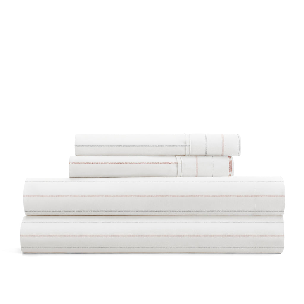 - KING: 1 flat sheet (108" x 102"), 1 fitted sheet (78" x 80" x 14") and 2 King pillowcases (20" x 40")