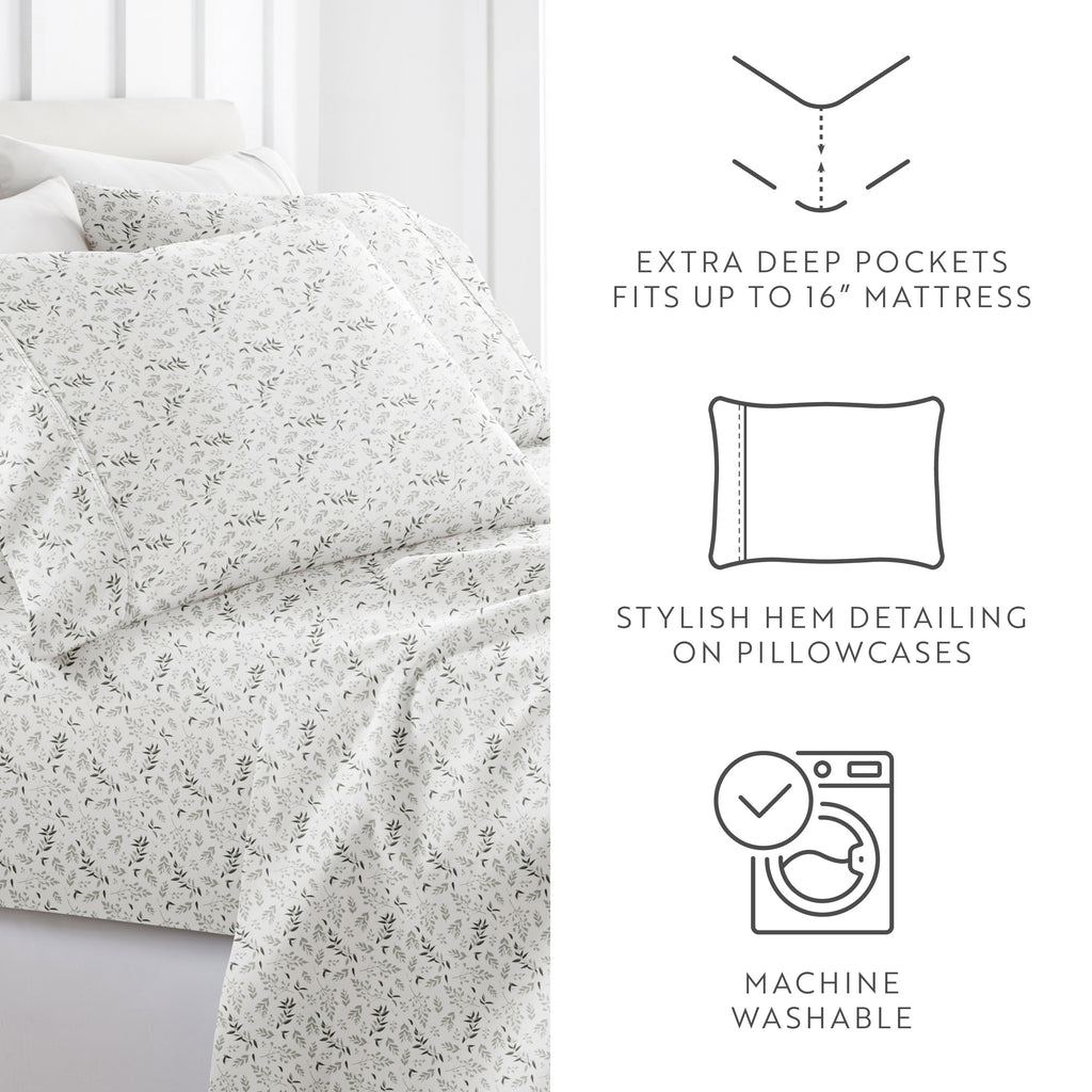 Tossed Foliage 4-Piece Patterned Sheet Set
