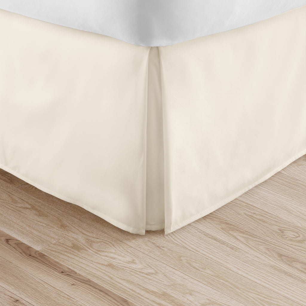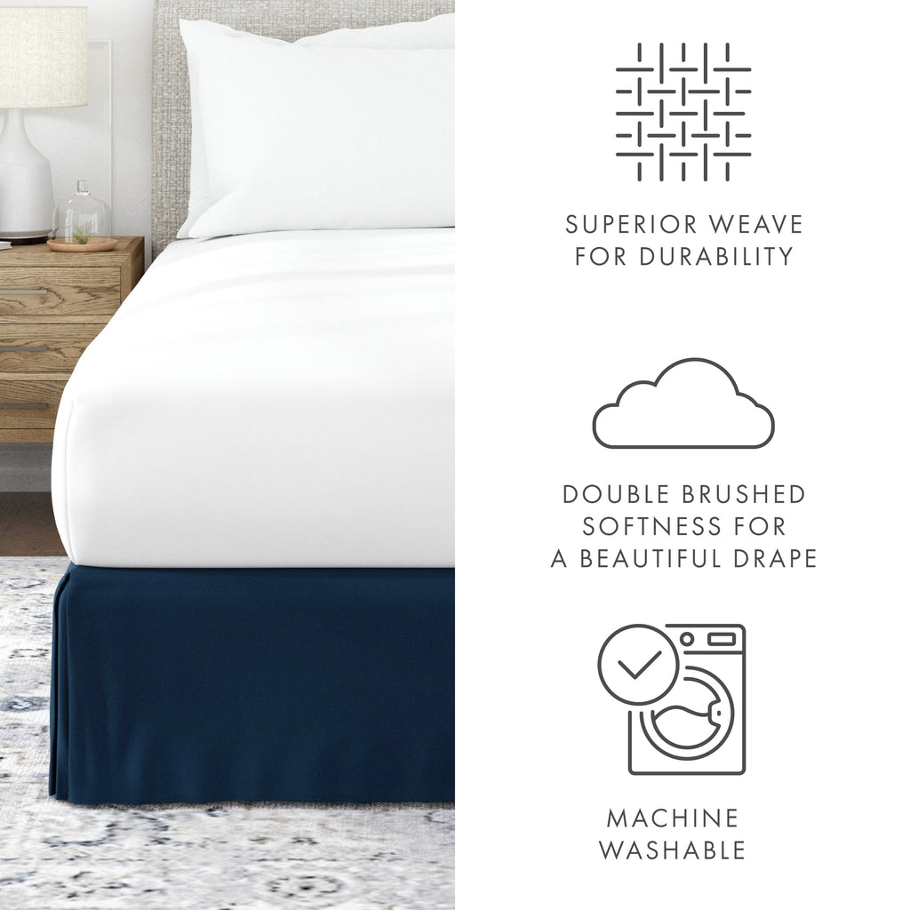 Perfectly conceal bedposts, stored items and protect against the accumulation of dust with this premium pleated dust ruffle bed skirt. Made from high quality yarns, this bed skirt is wrinkle resistant and features a gorgeous pleated design on the corners and center of the skirt. Available in 6 sizes and a variety of 12 beautiful colors, you're sure to find the perfect match for your comforter or sheet set.