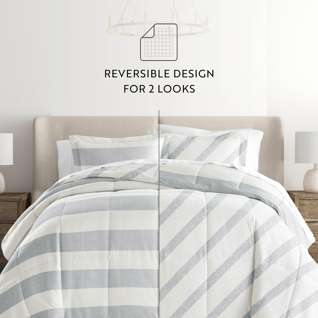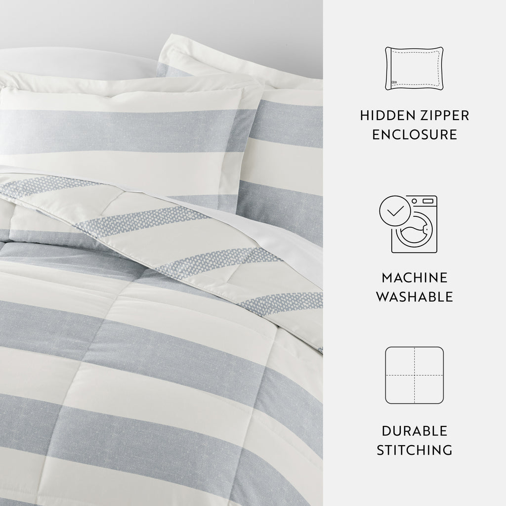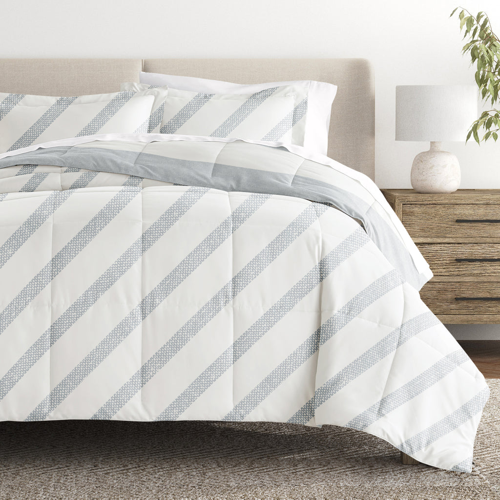 Distressed Stripe Patterned Down-Alternative Comforter Set
