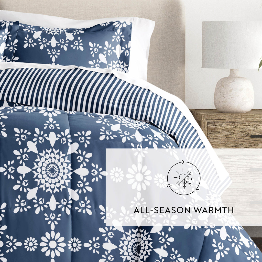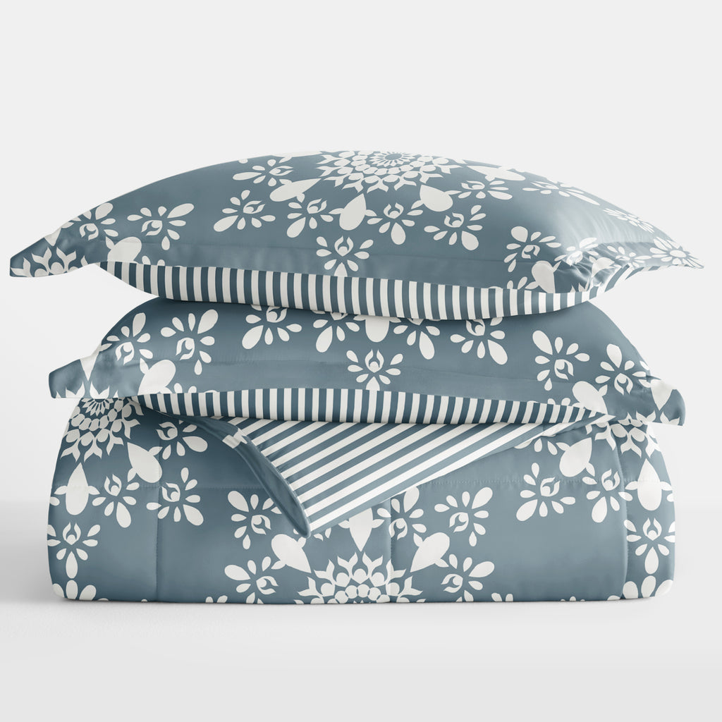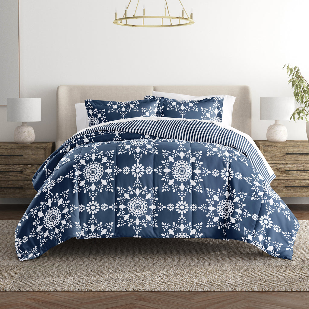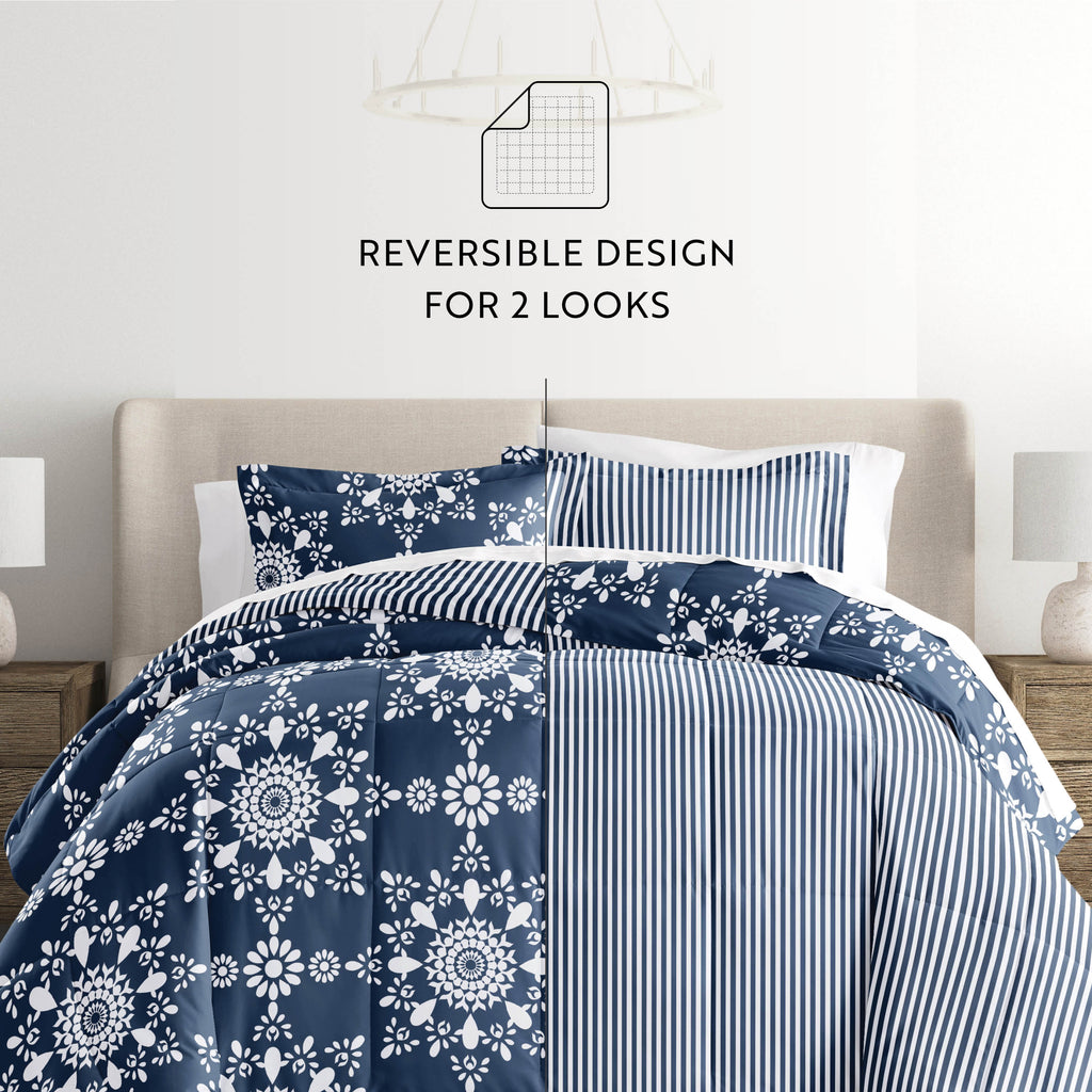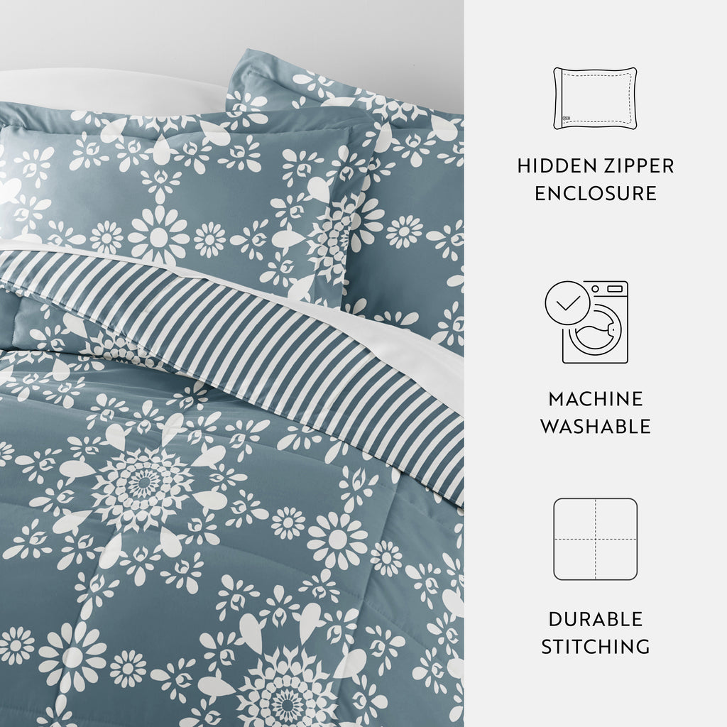 Daisy Medallion Reversible Patterned Down-Alternative Comforter Set