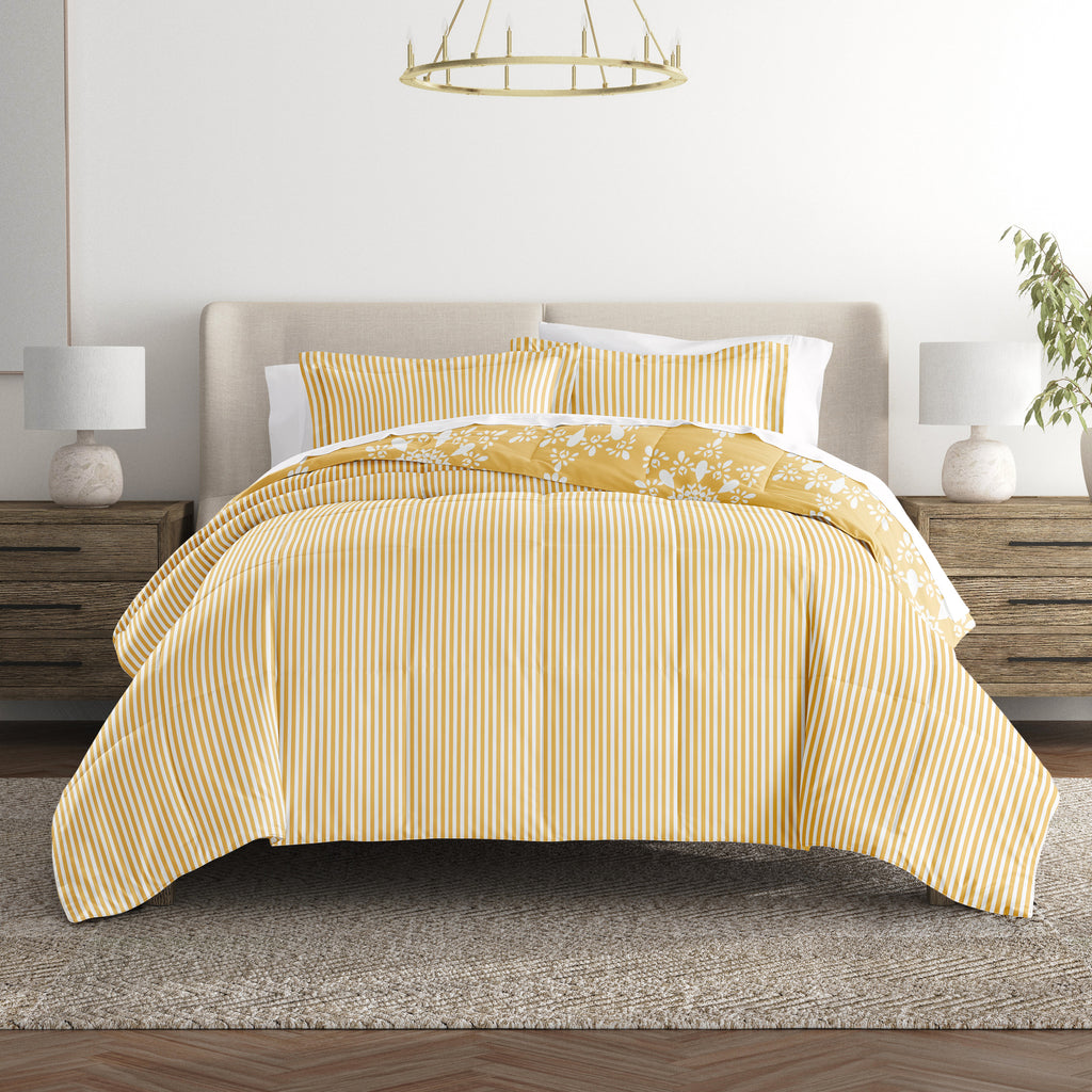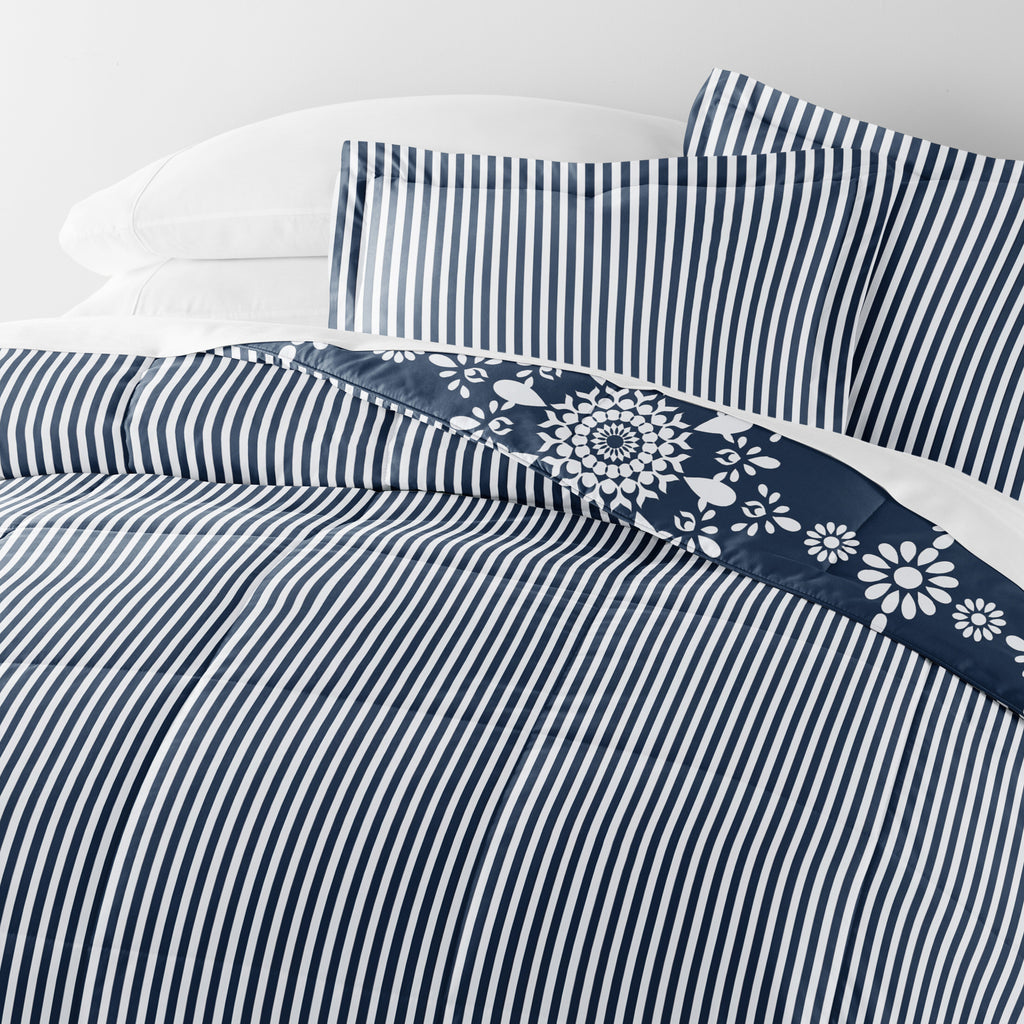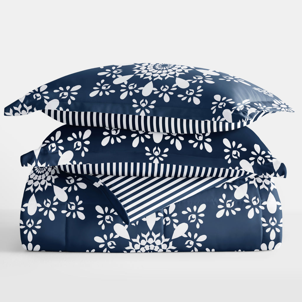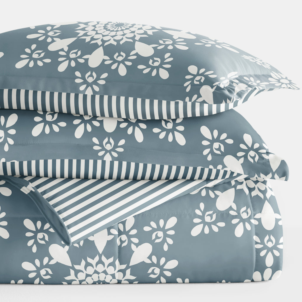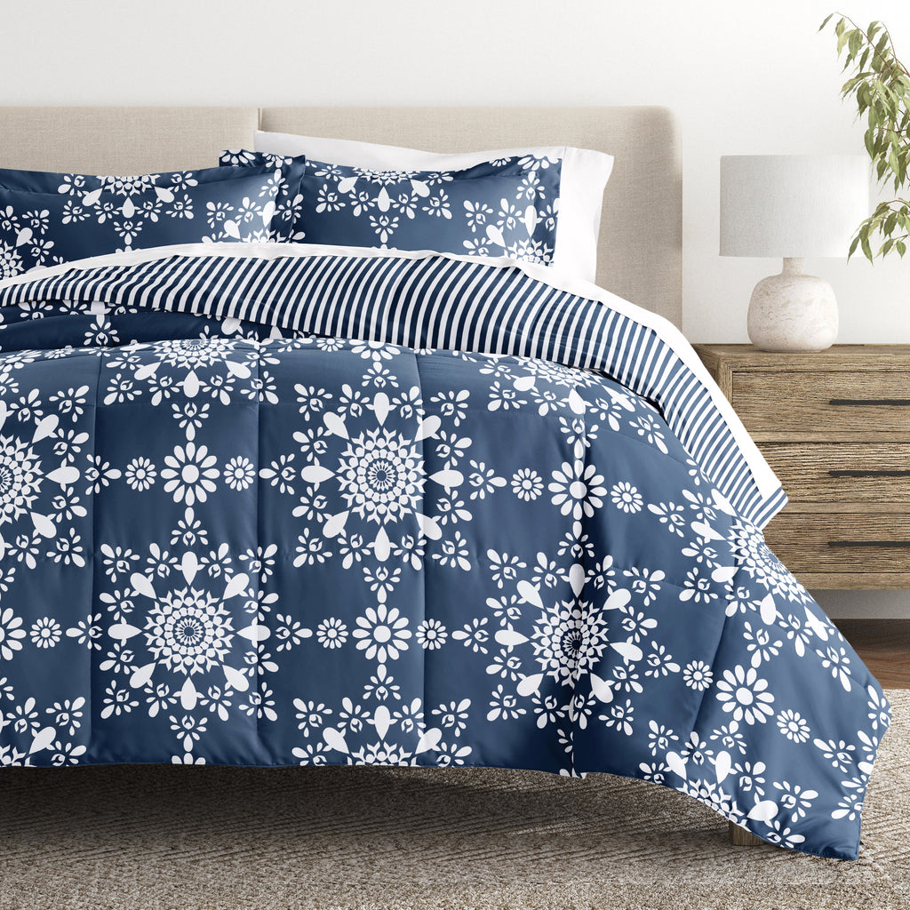 Daisy Medallion Reversible Patterned Down-Alternative Comforter Set