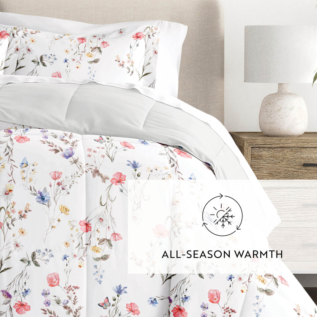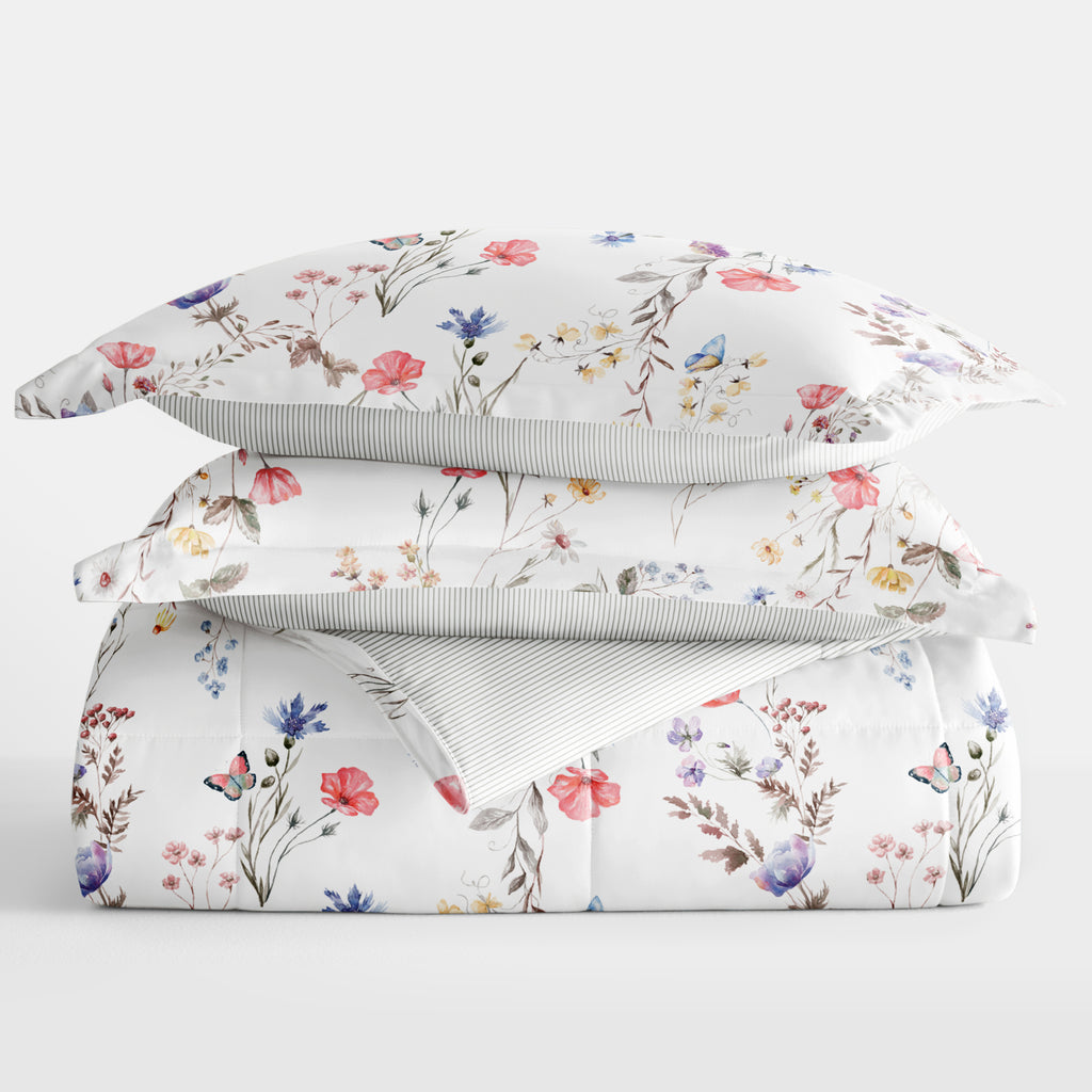 Meadow Floral Stripe Reversible Patterned Down-Alternative Comforter Set