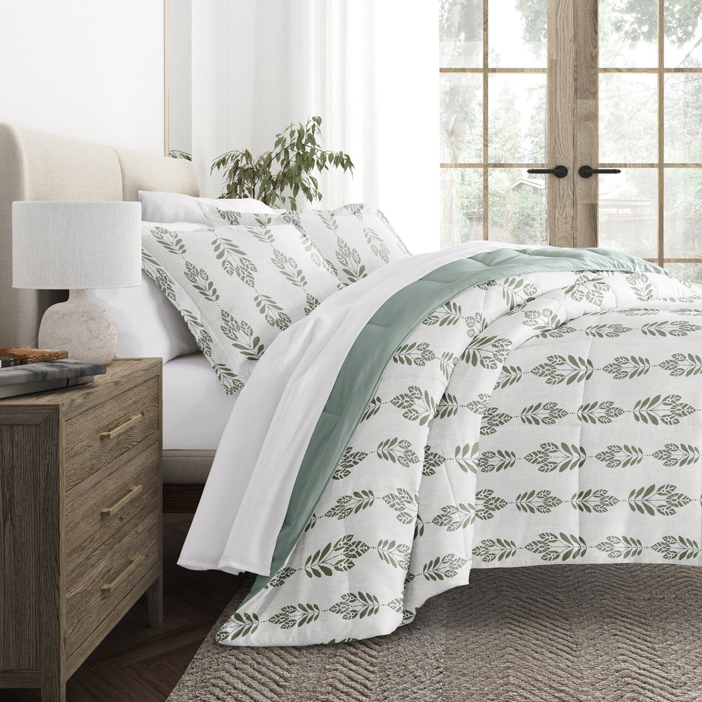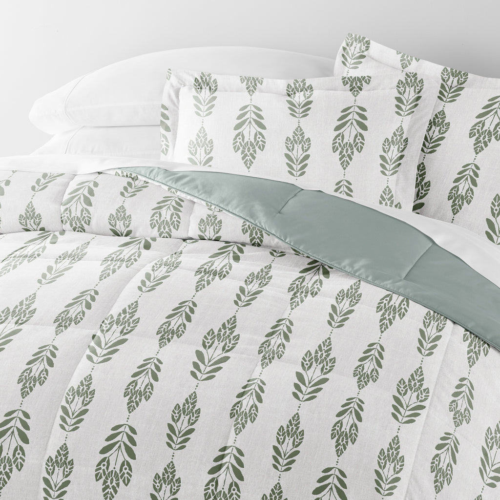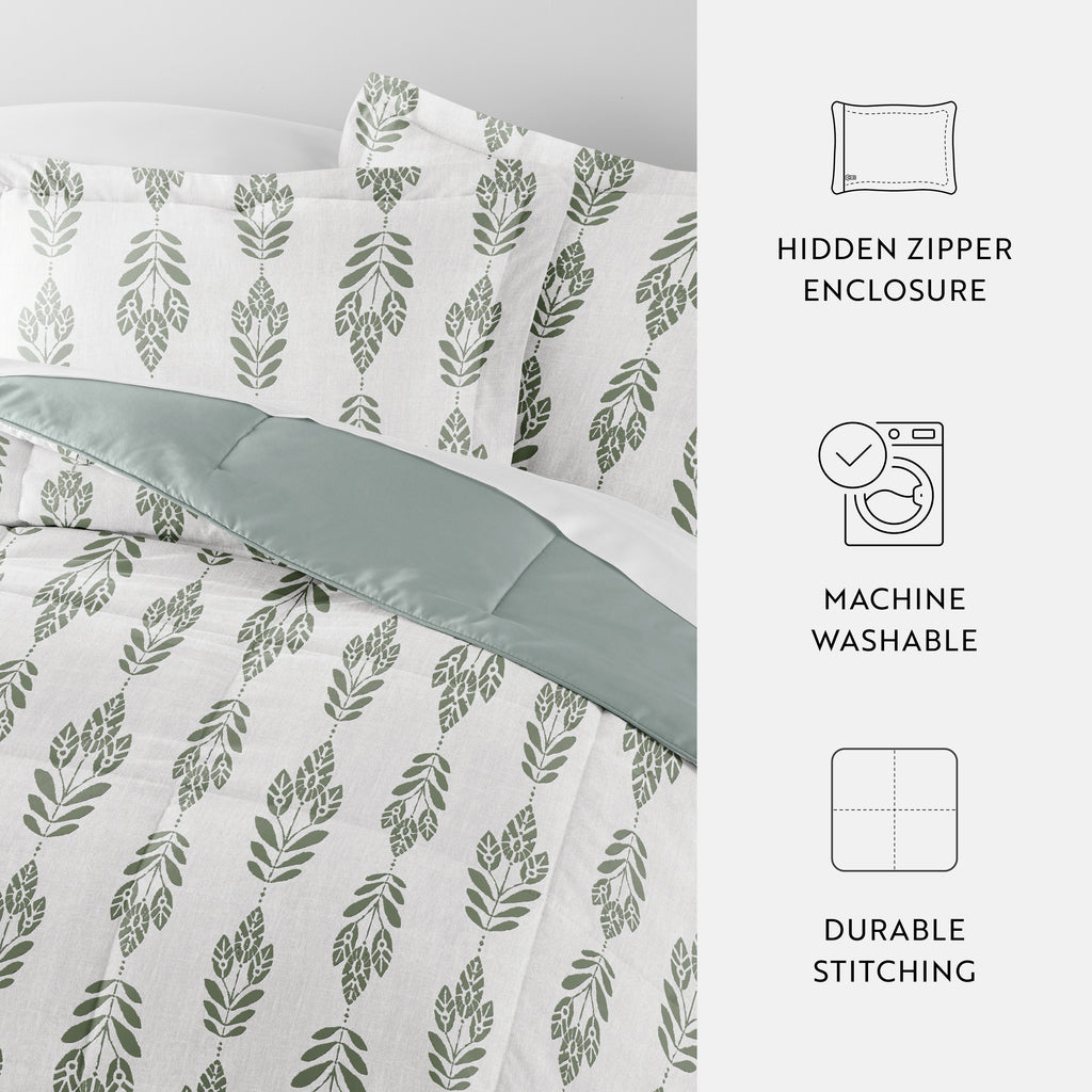 Folk Leaves Reversible Patterned Down-Alternative Comforter Set