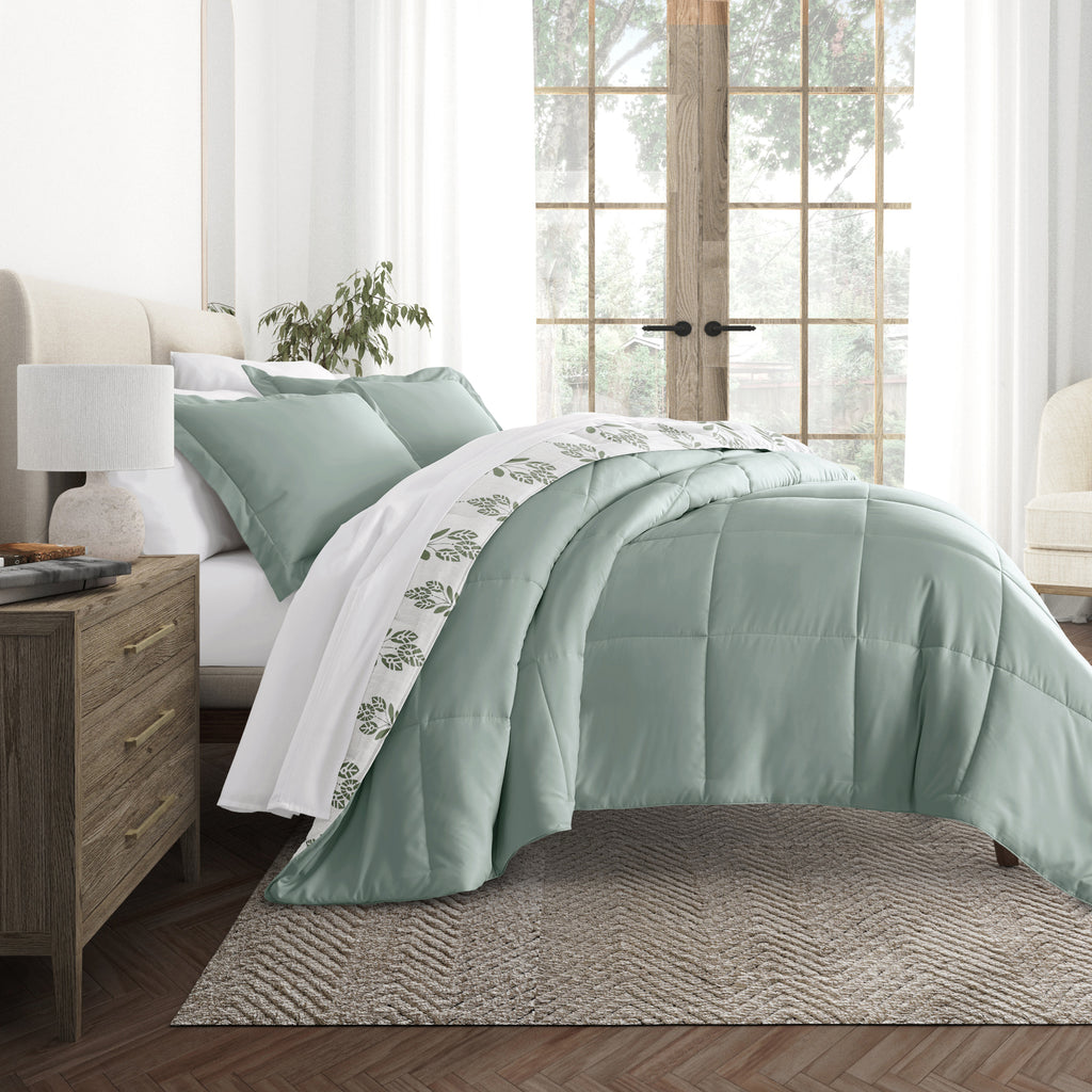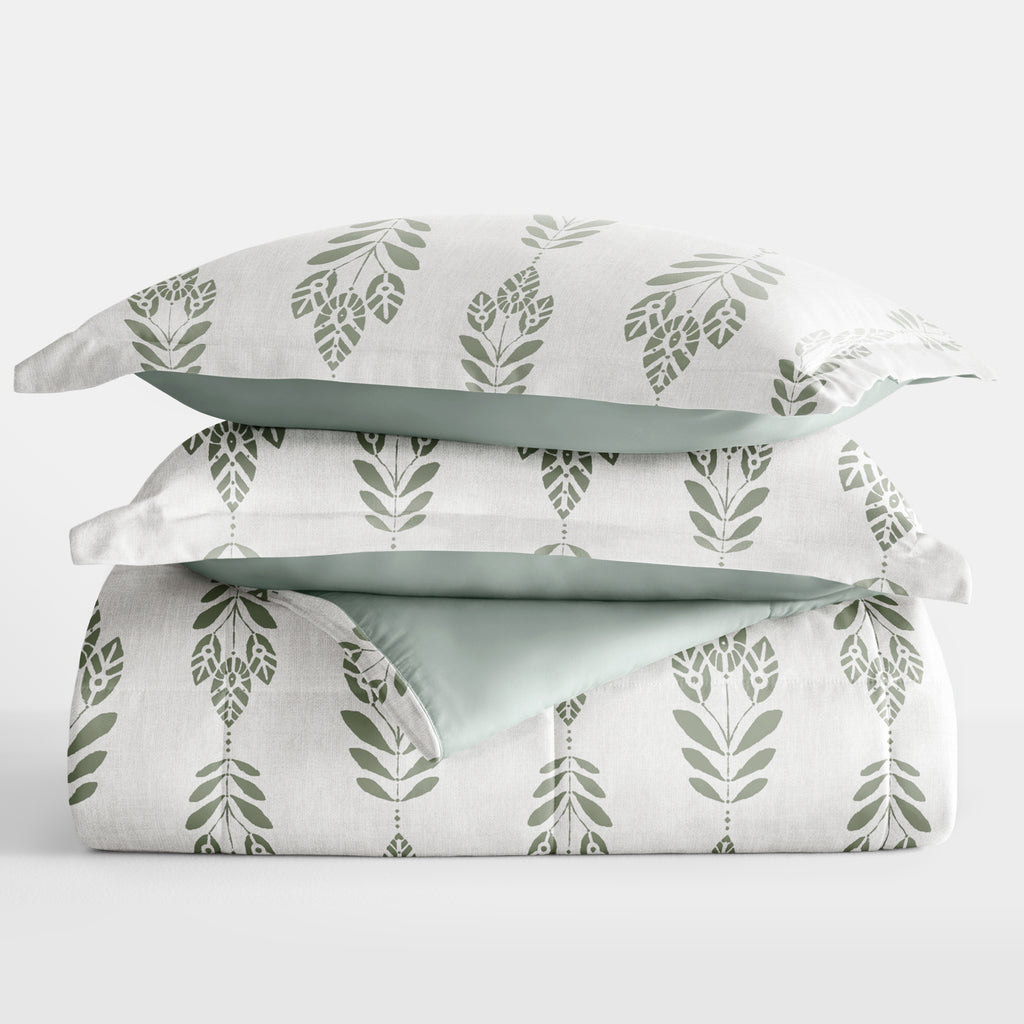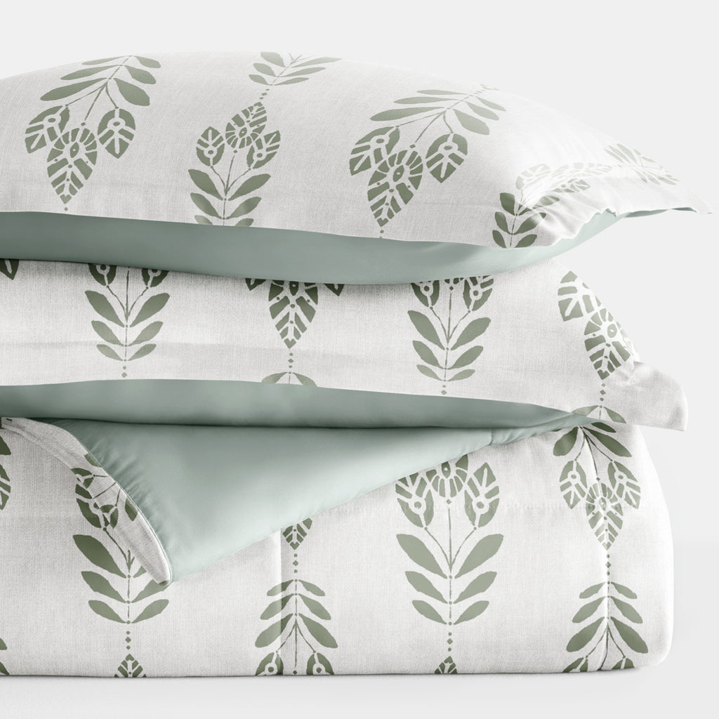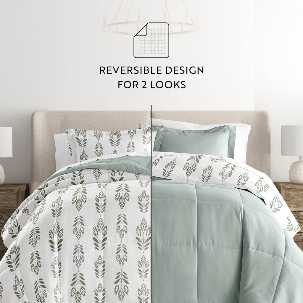 Folk Leaves Reversible Patterned Down-Alternative Comforter Set