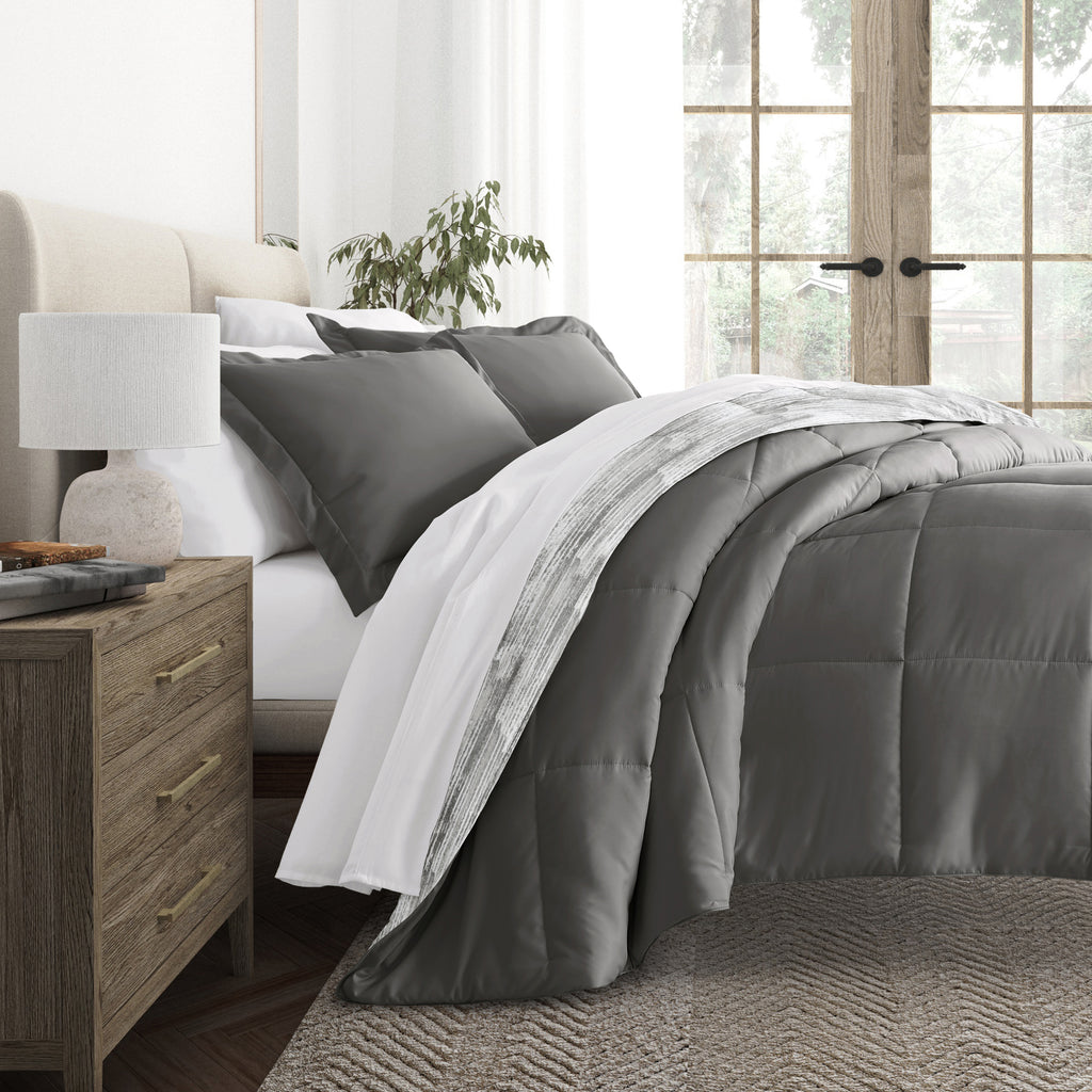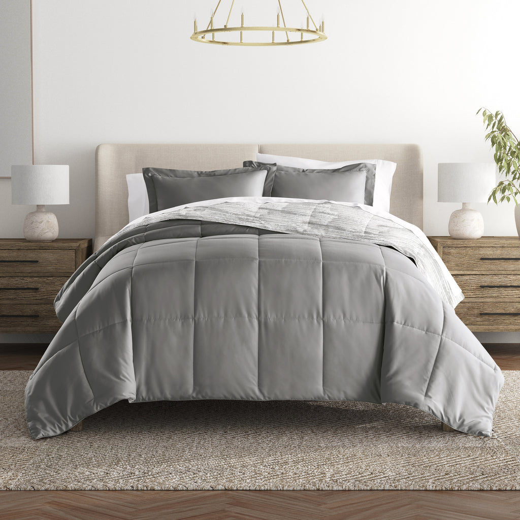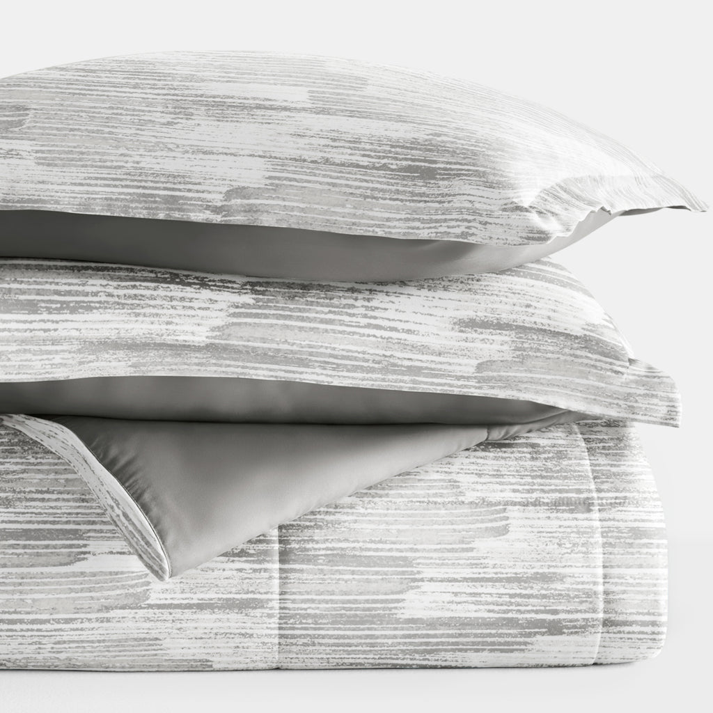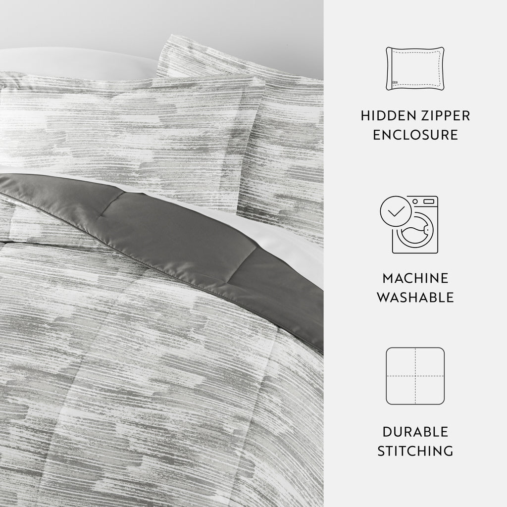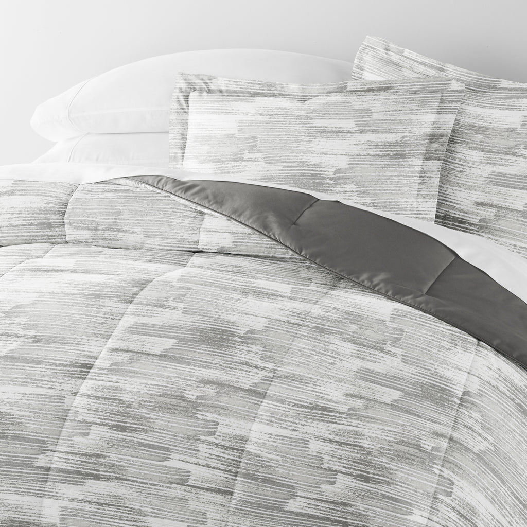 Textured Stripe Reversible Patterned Down-Alternative Comforter Set