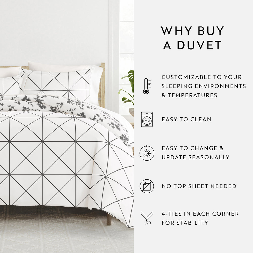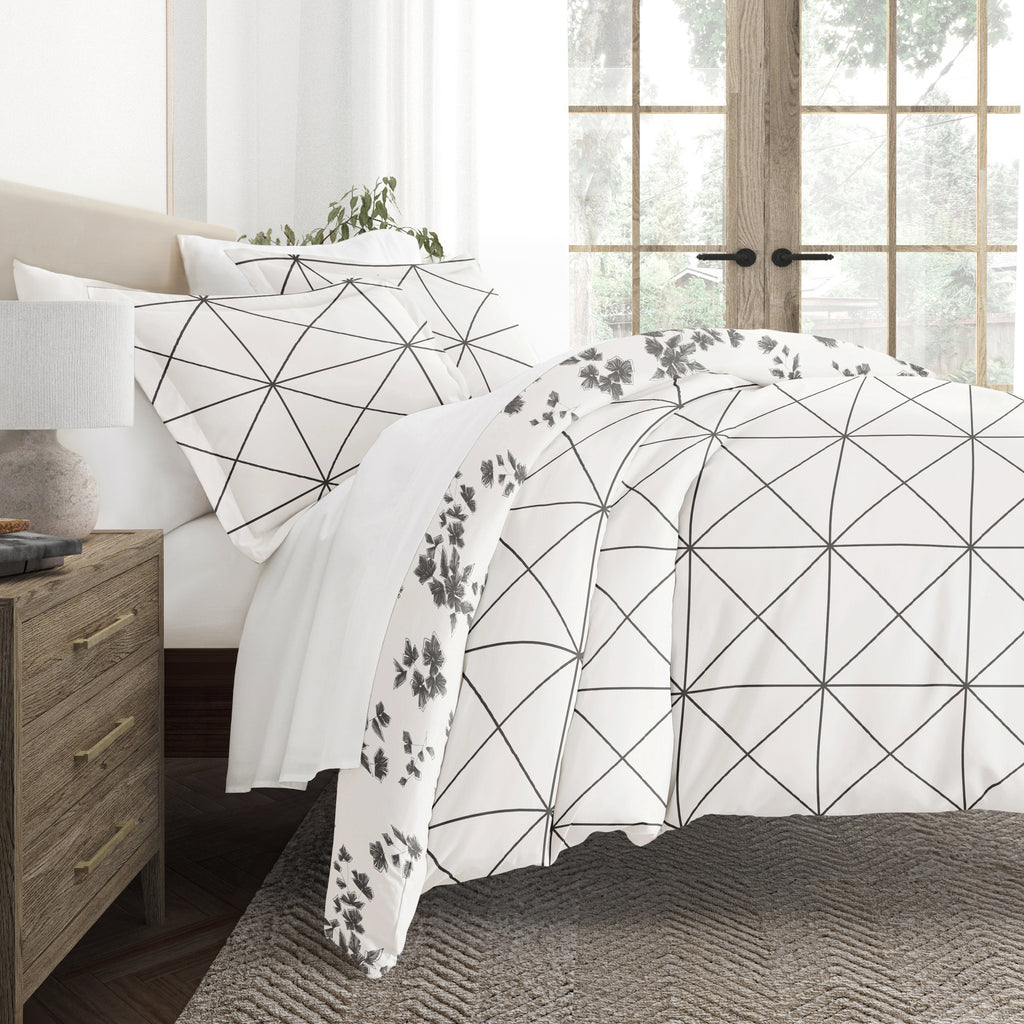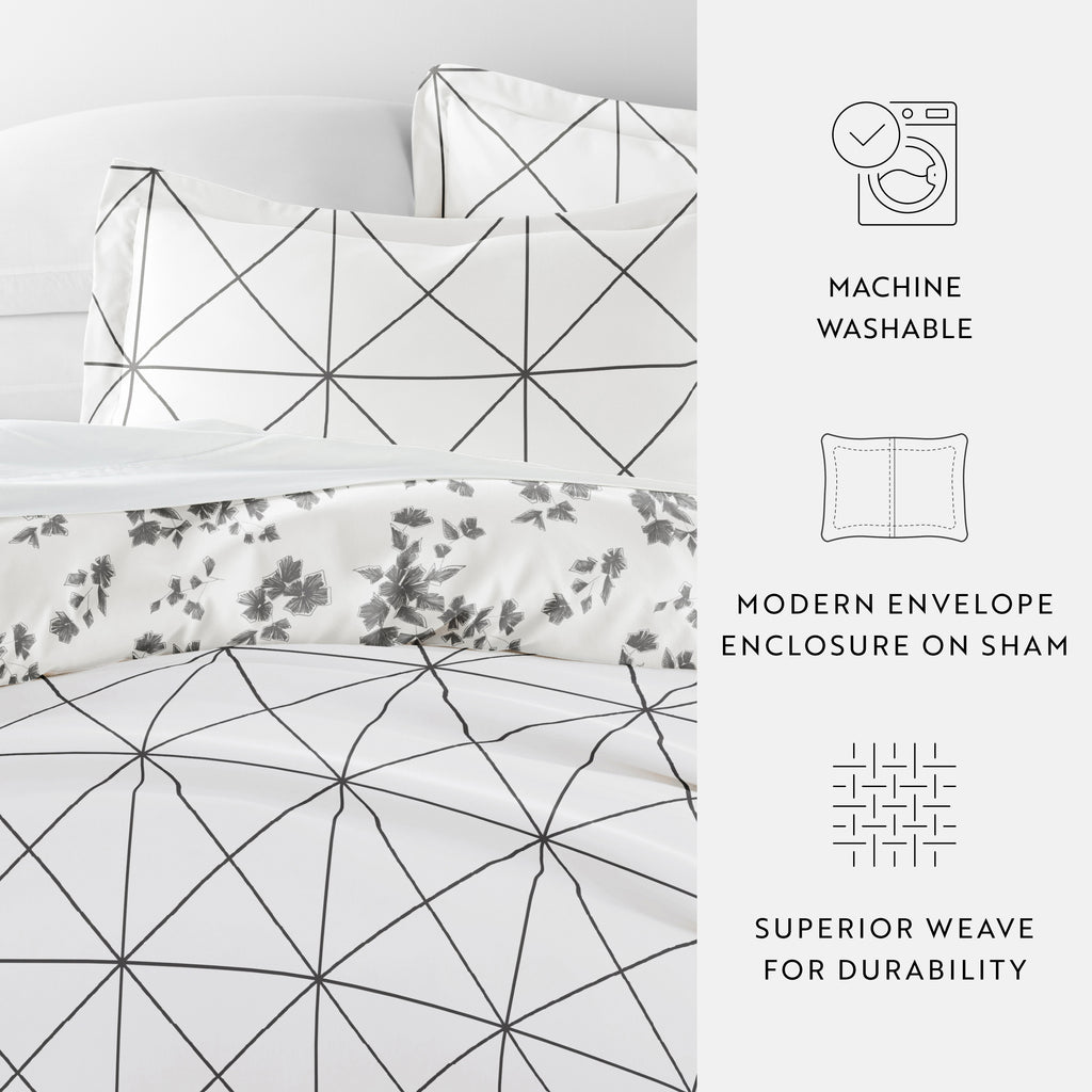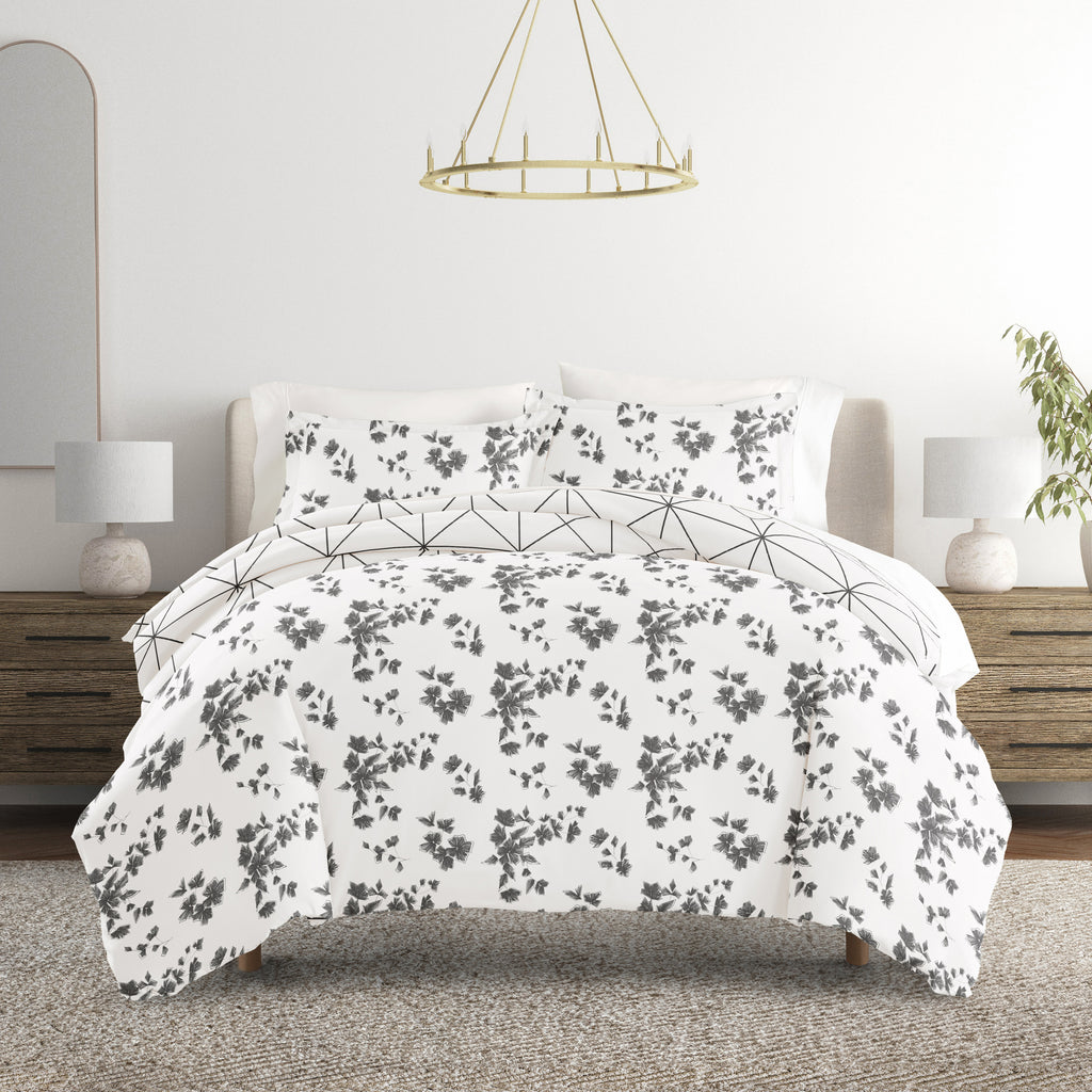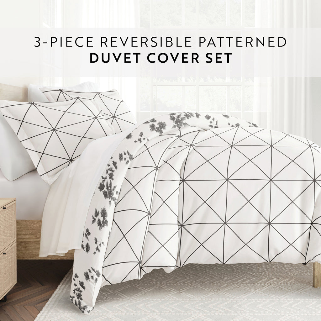 Edgy Flowers Patterned Reversible Duvet Cover Set