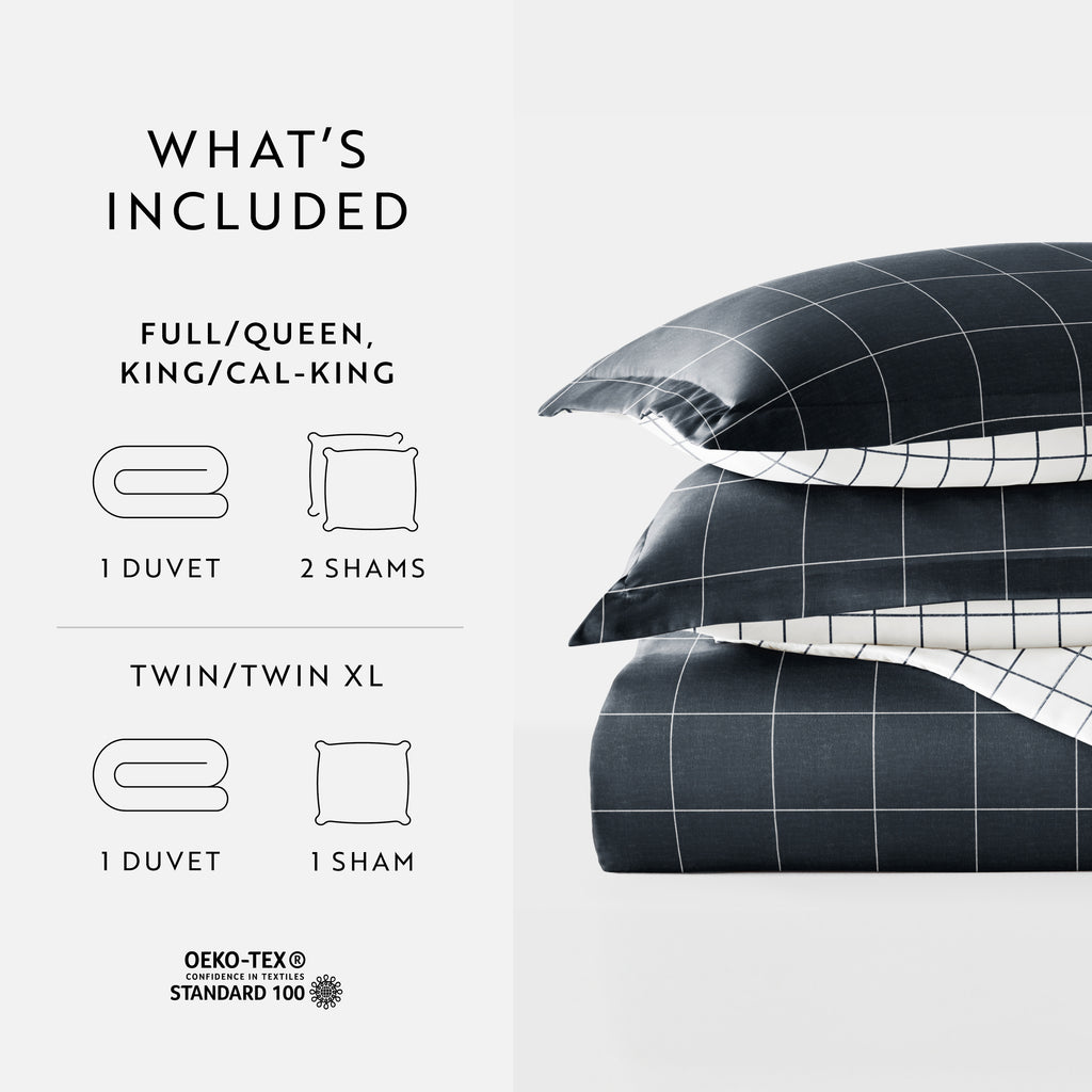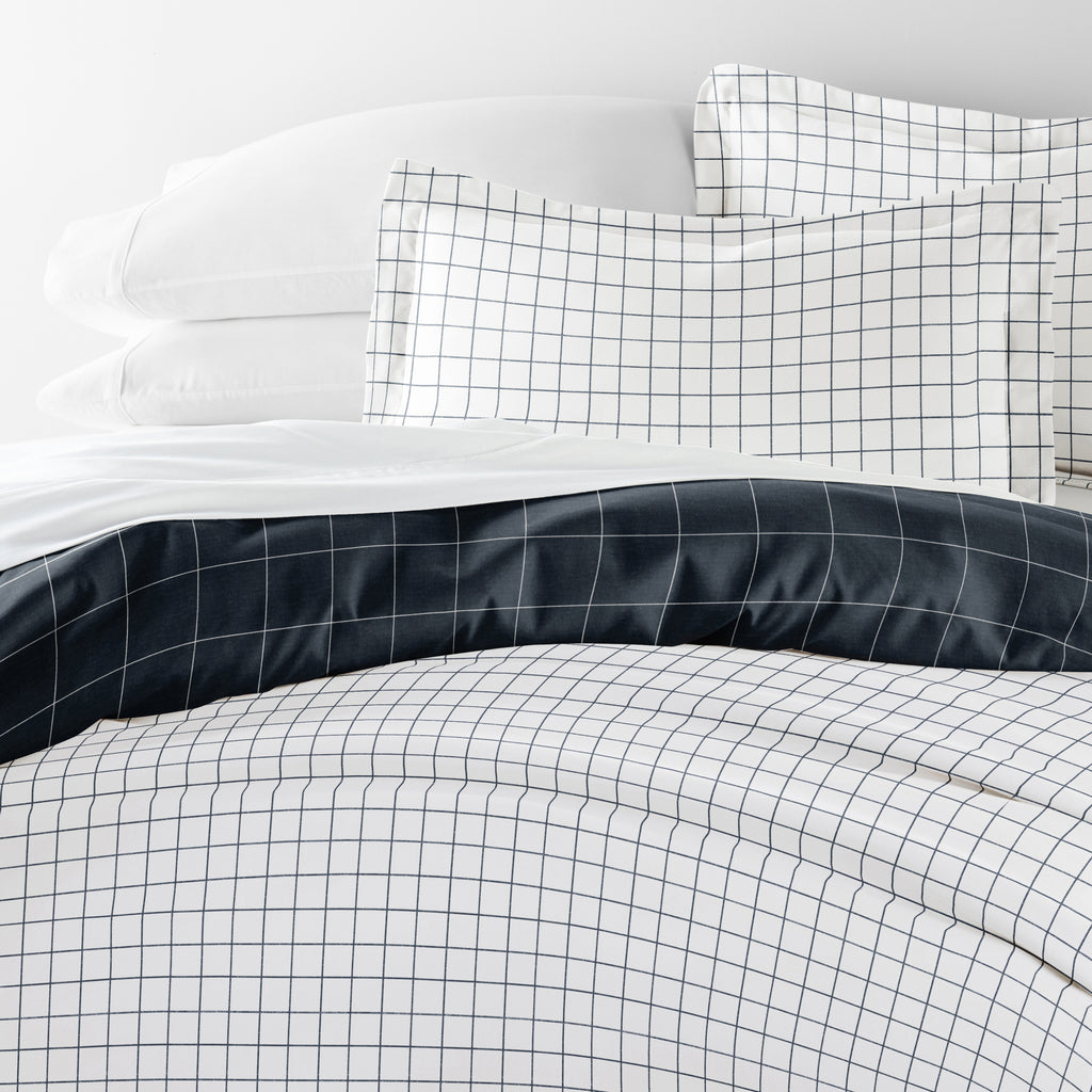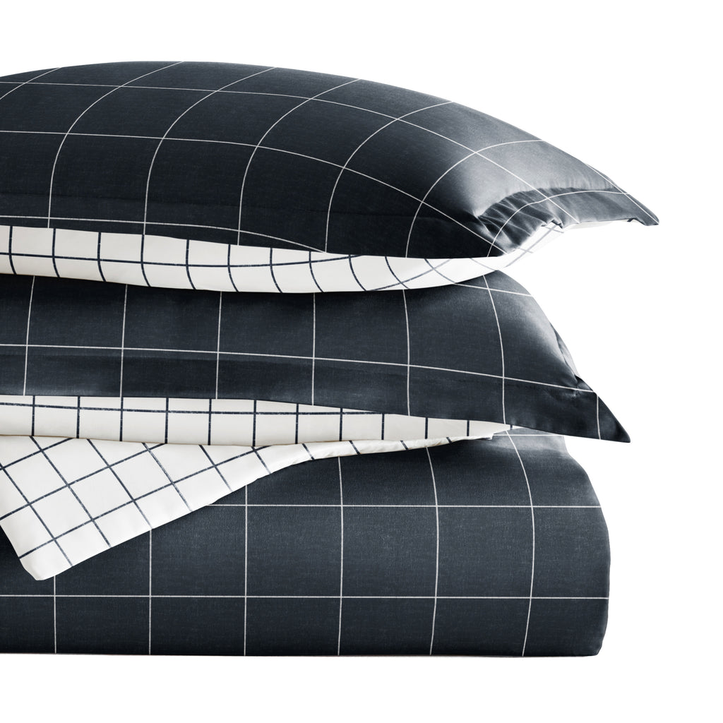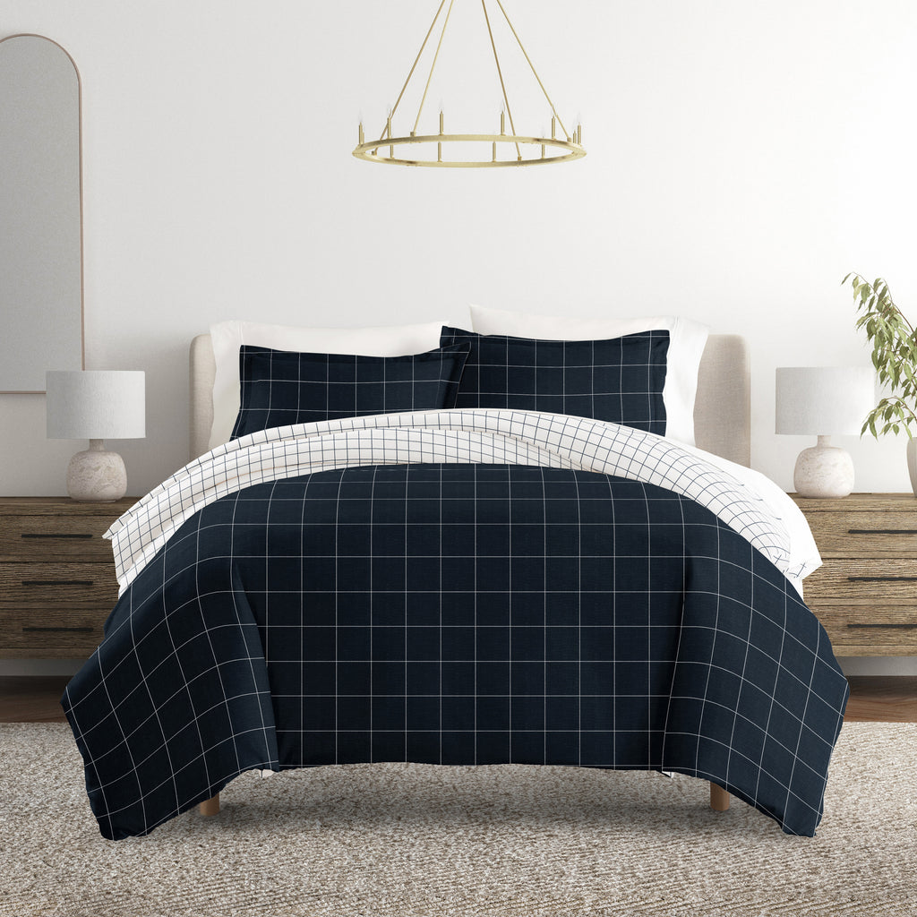 Rustic Windowpane Patterned Reversible Duvet Cover Set
