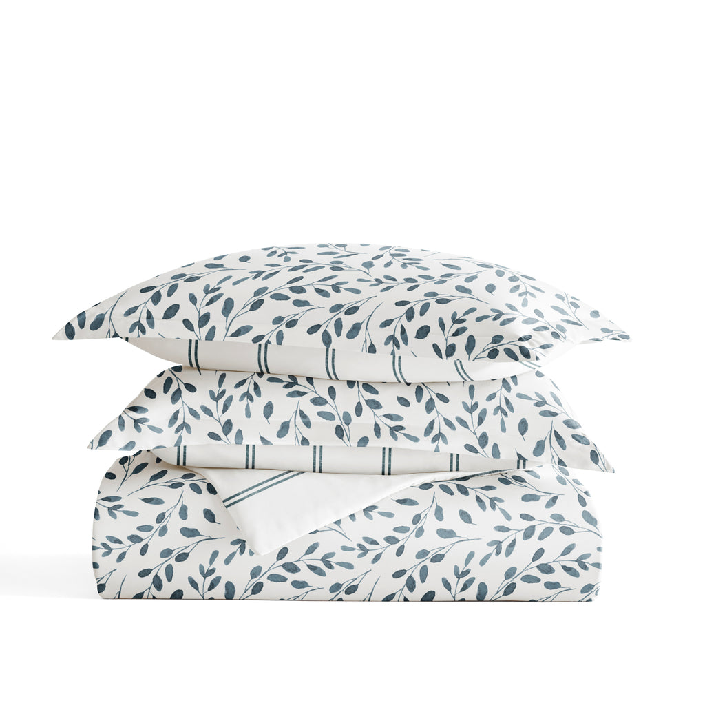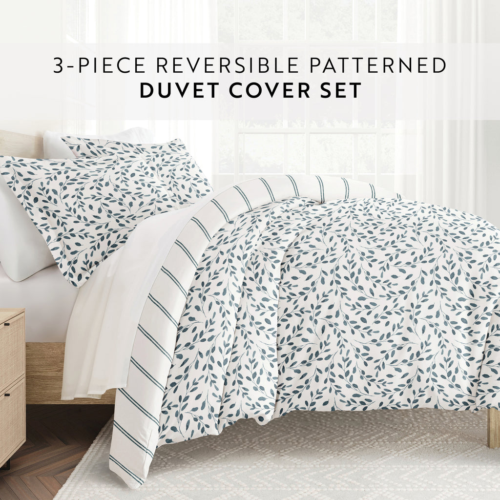 Watercolor Vines Patterned Reversible Duvet Cover Set