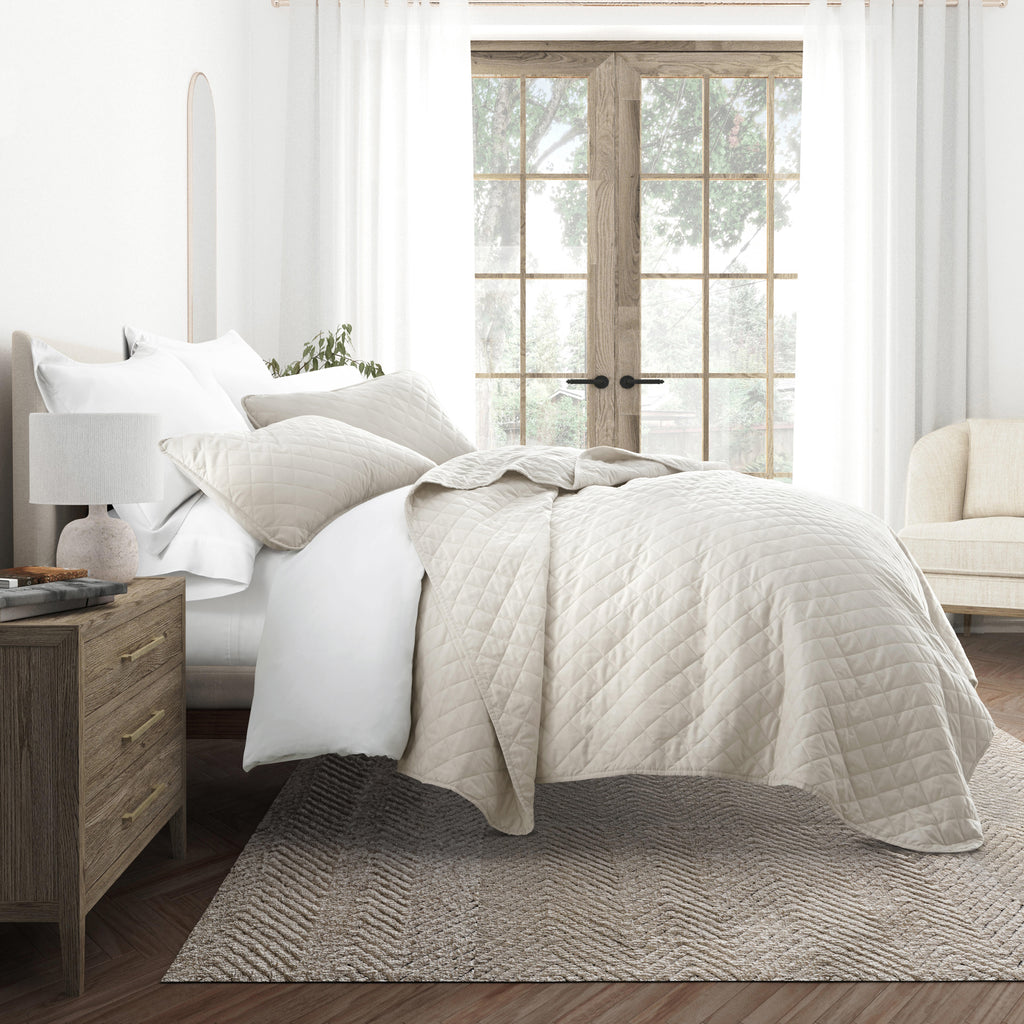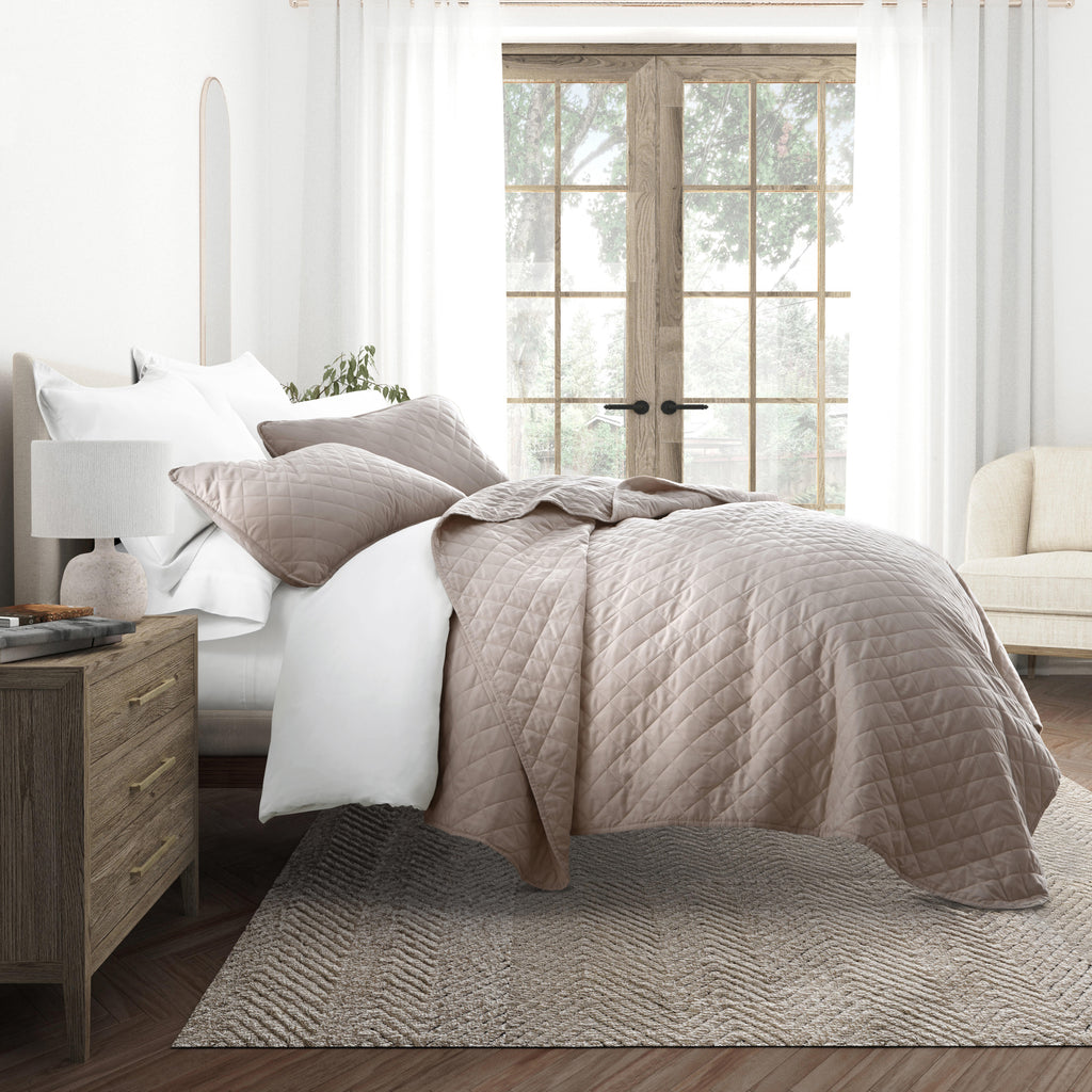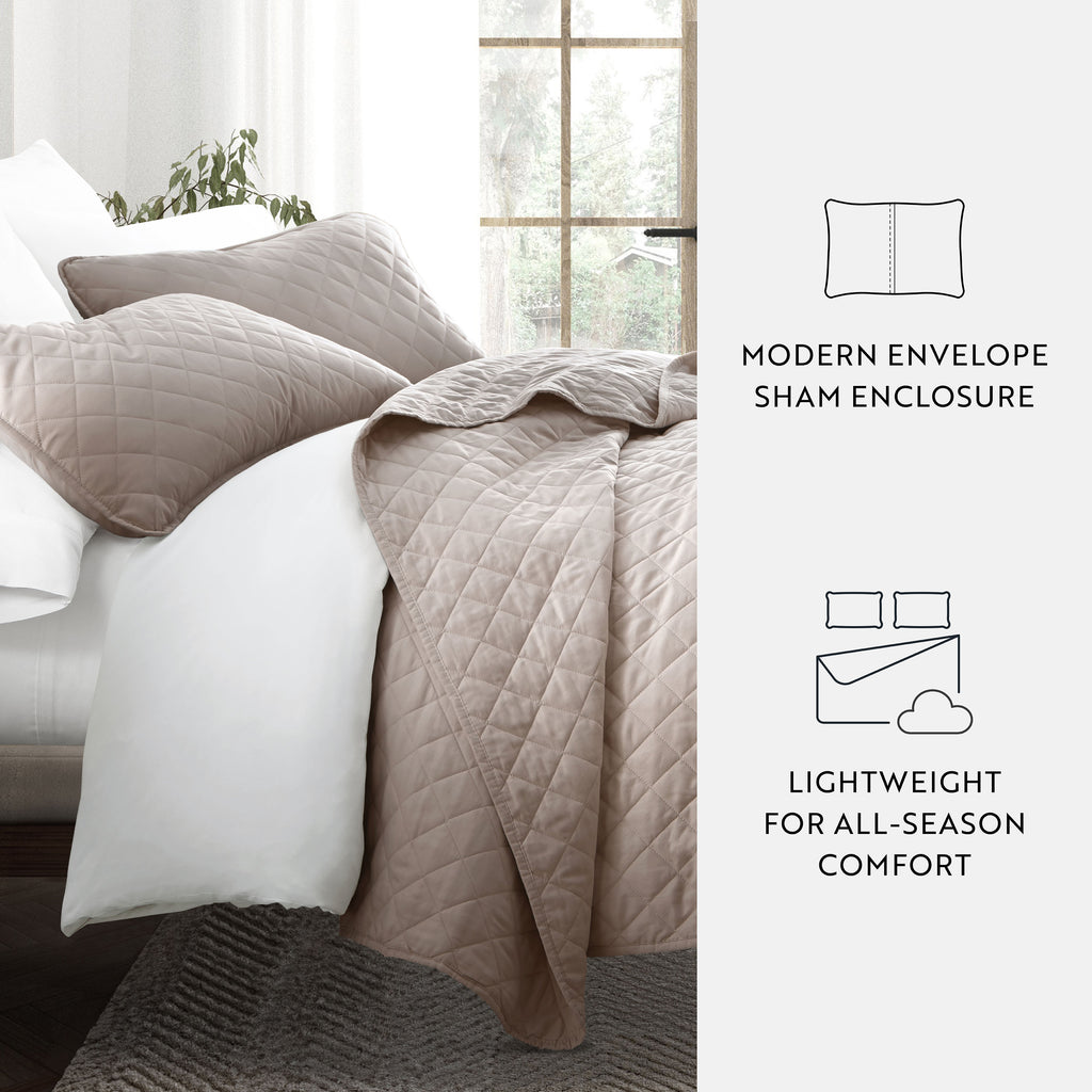 Lightweight Diamond Stitch Quilted Coverlet Set