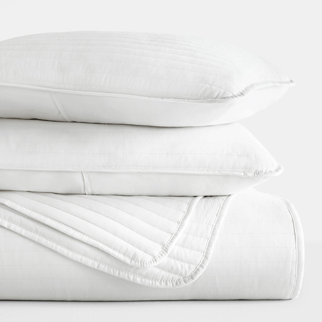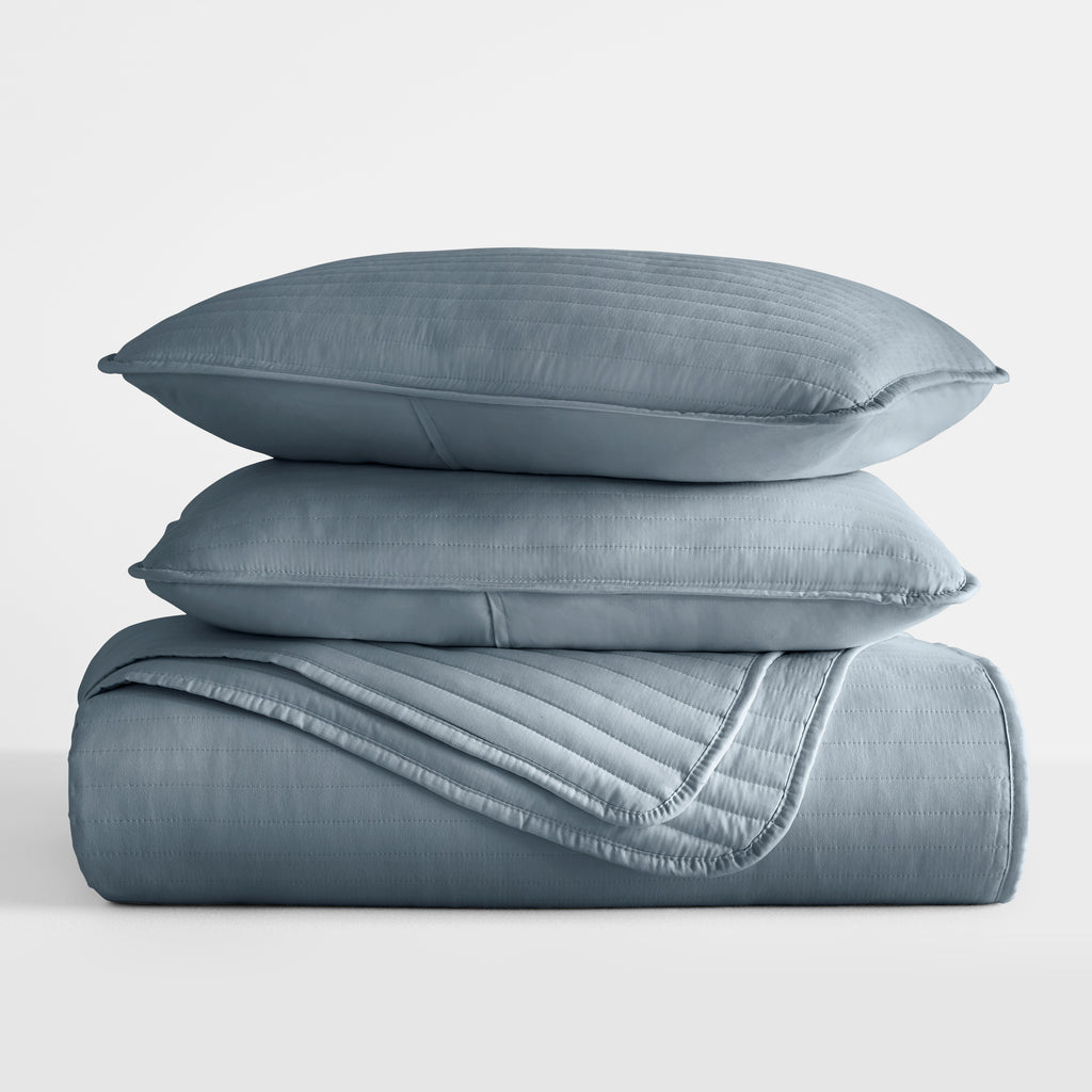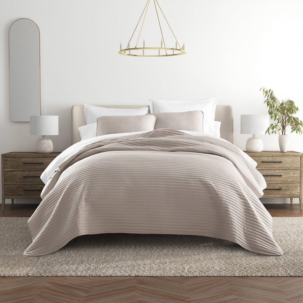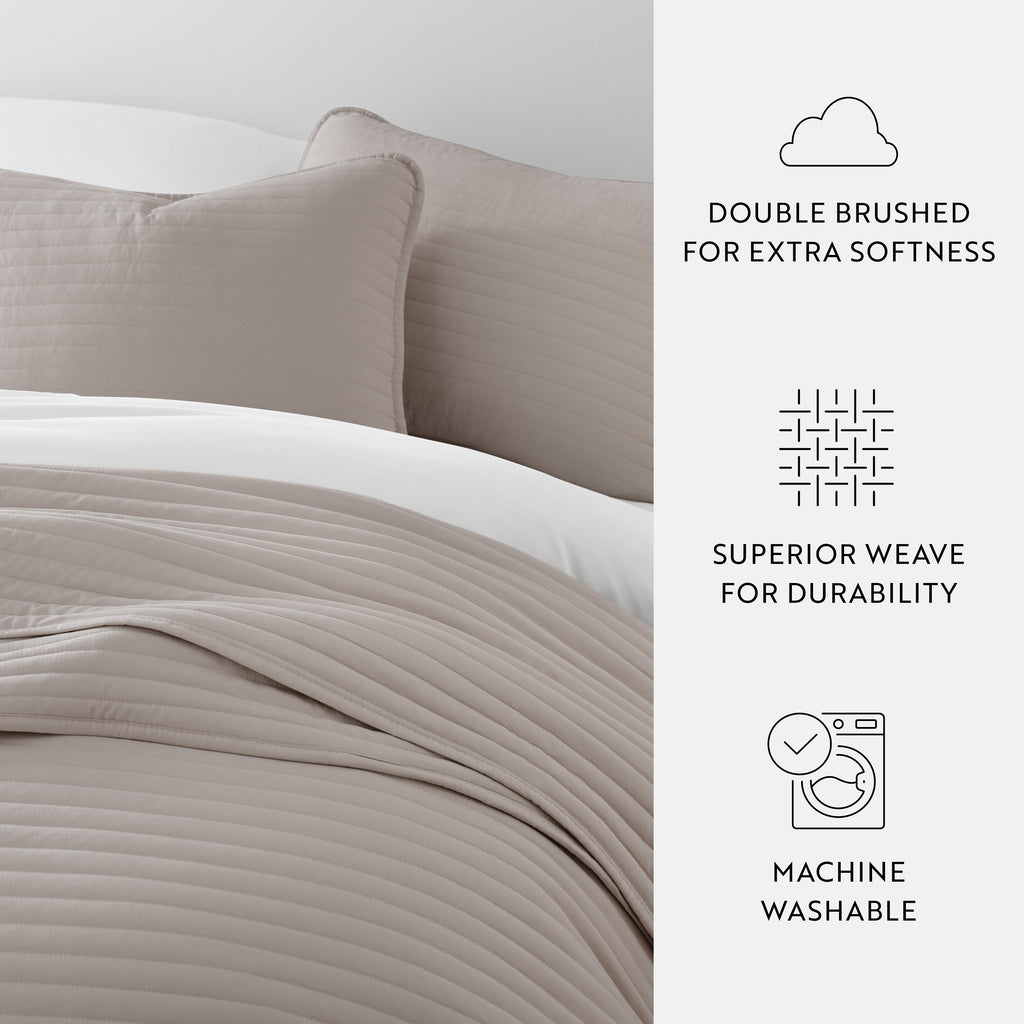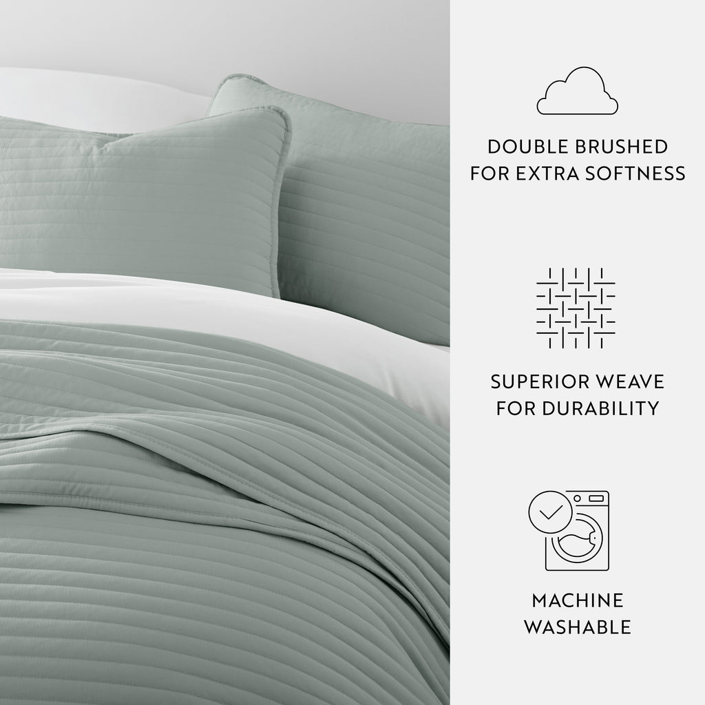 Give your room a comfy new addition with this ultra soft quilted coverlet set with shams! We've generously filled it with artificial down, and each piece is double brushed to give it that super soft, cozy feel. The beautiful, subtle quilted stitchings add dimension and a gorgeous touch to any bedroom. Spun from our premium yarns, this set is twice as strong as cotton, wrinkle resistant and a perfect option for those with allergies or sensitive skin. Available in 3 elegant stitched designs of striped, floral and diamond, elevating the look and feel of any bedroom. The sets are available in 6 gorgeous colors, it'll be hard to pick only one for your bed refresh!