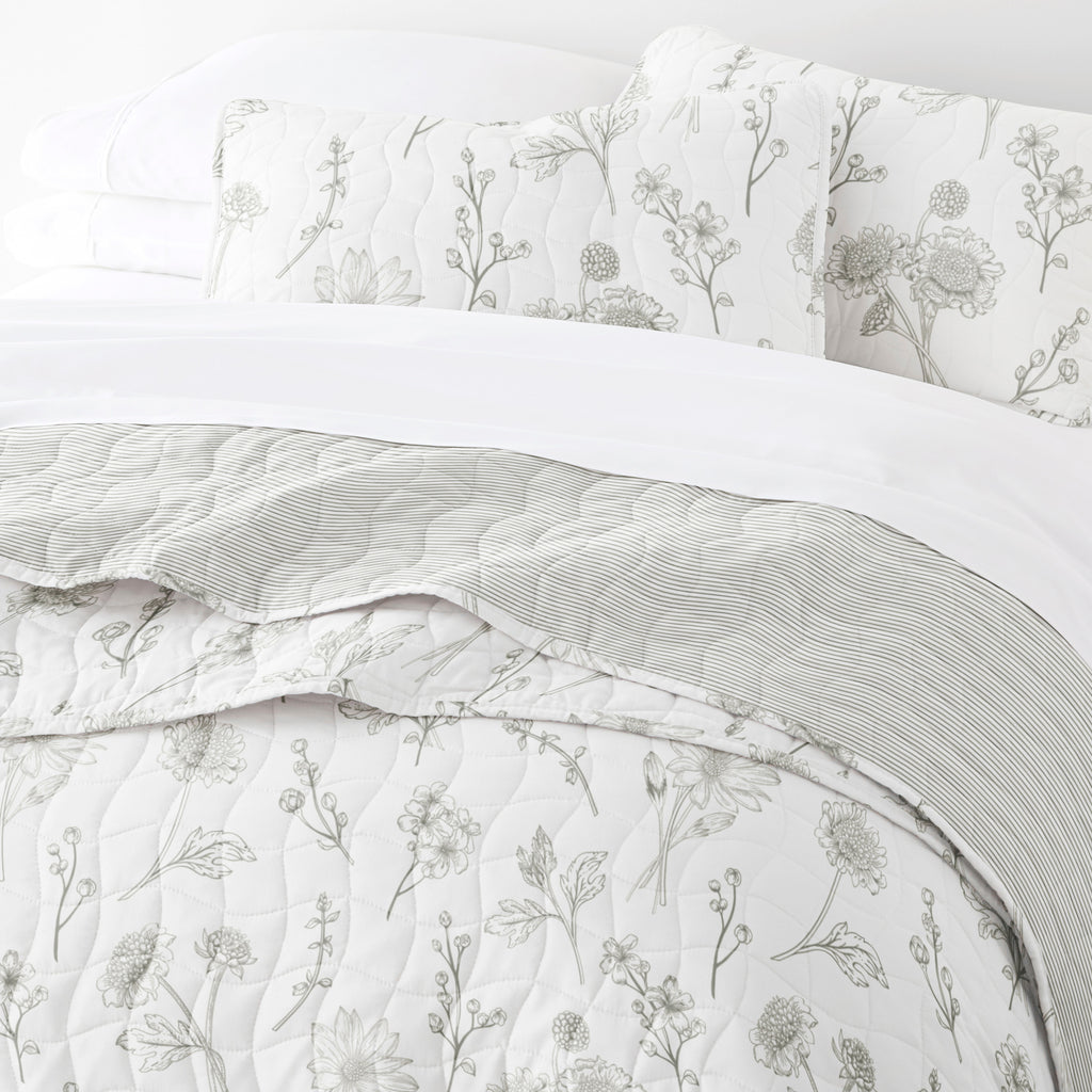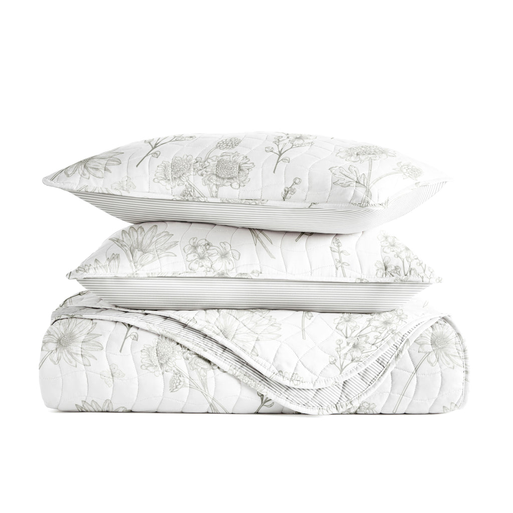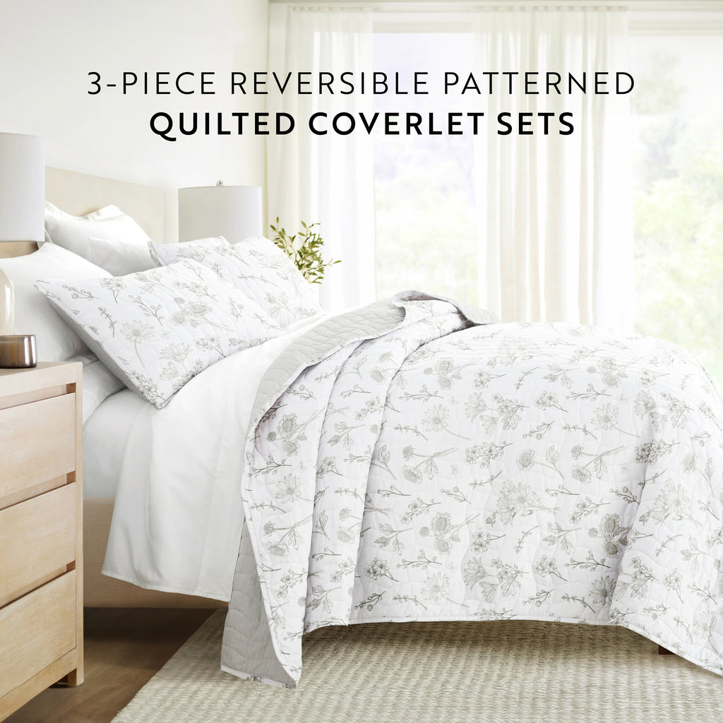 Blooming Daisy Patterned Quilted Coverlet Set