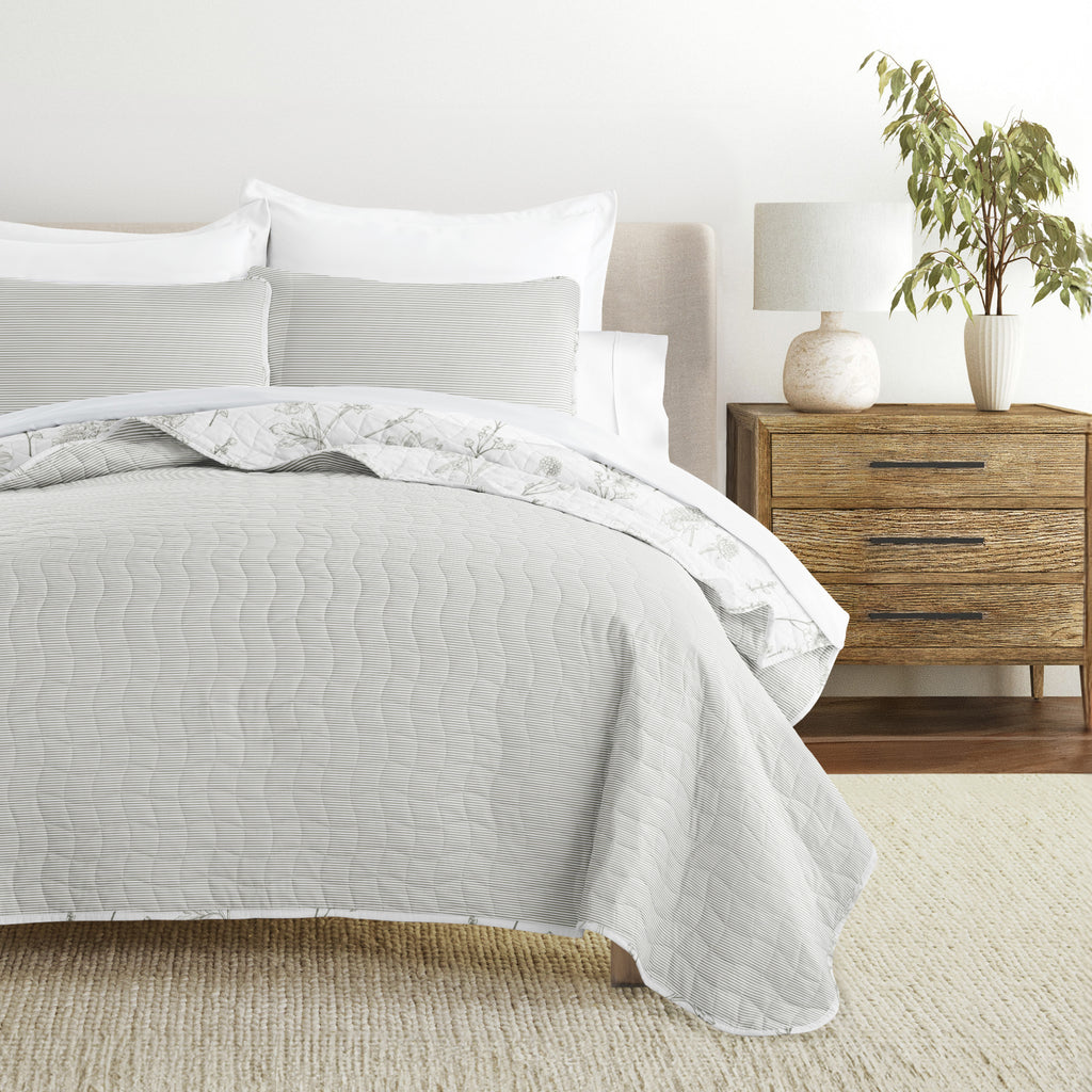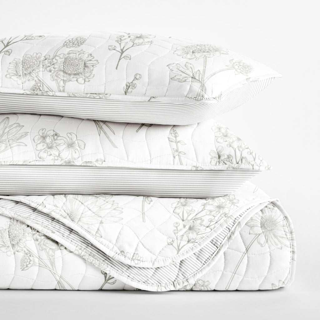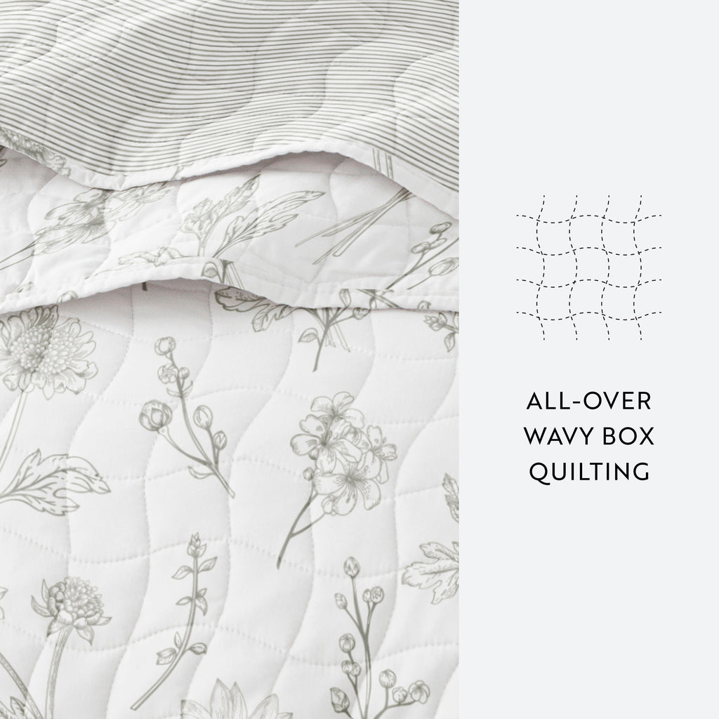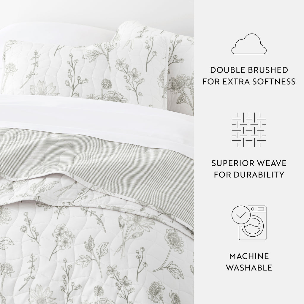Blooming Daisy Patterned Quilted Coverlet Set