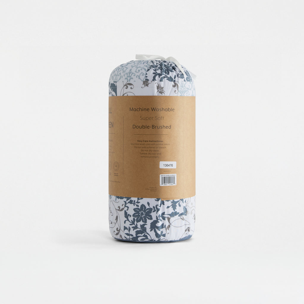 - Super soft patterned reversible quilt set with artificial down fill.
