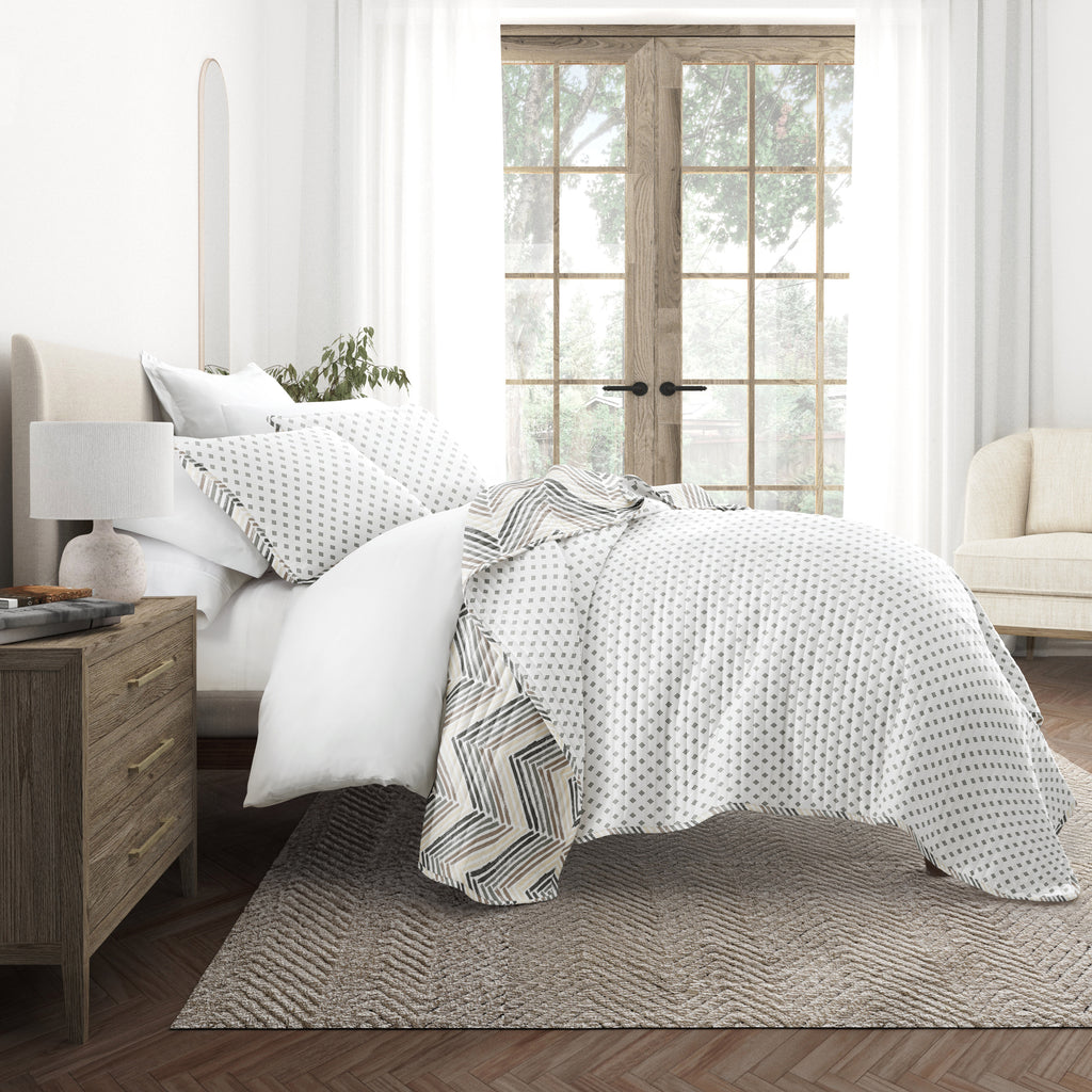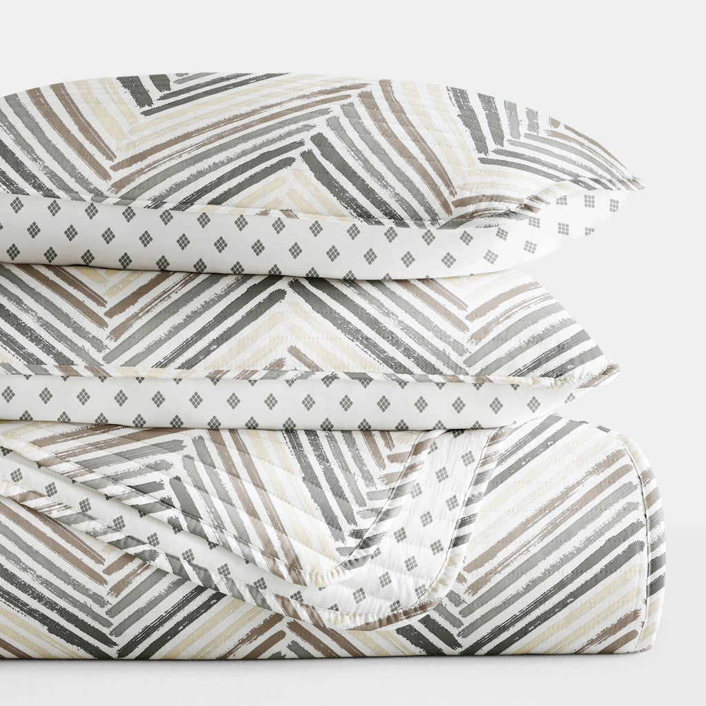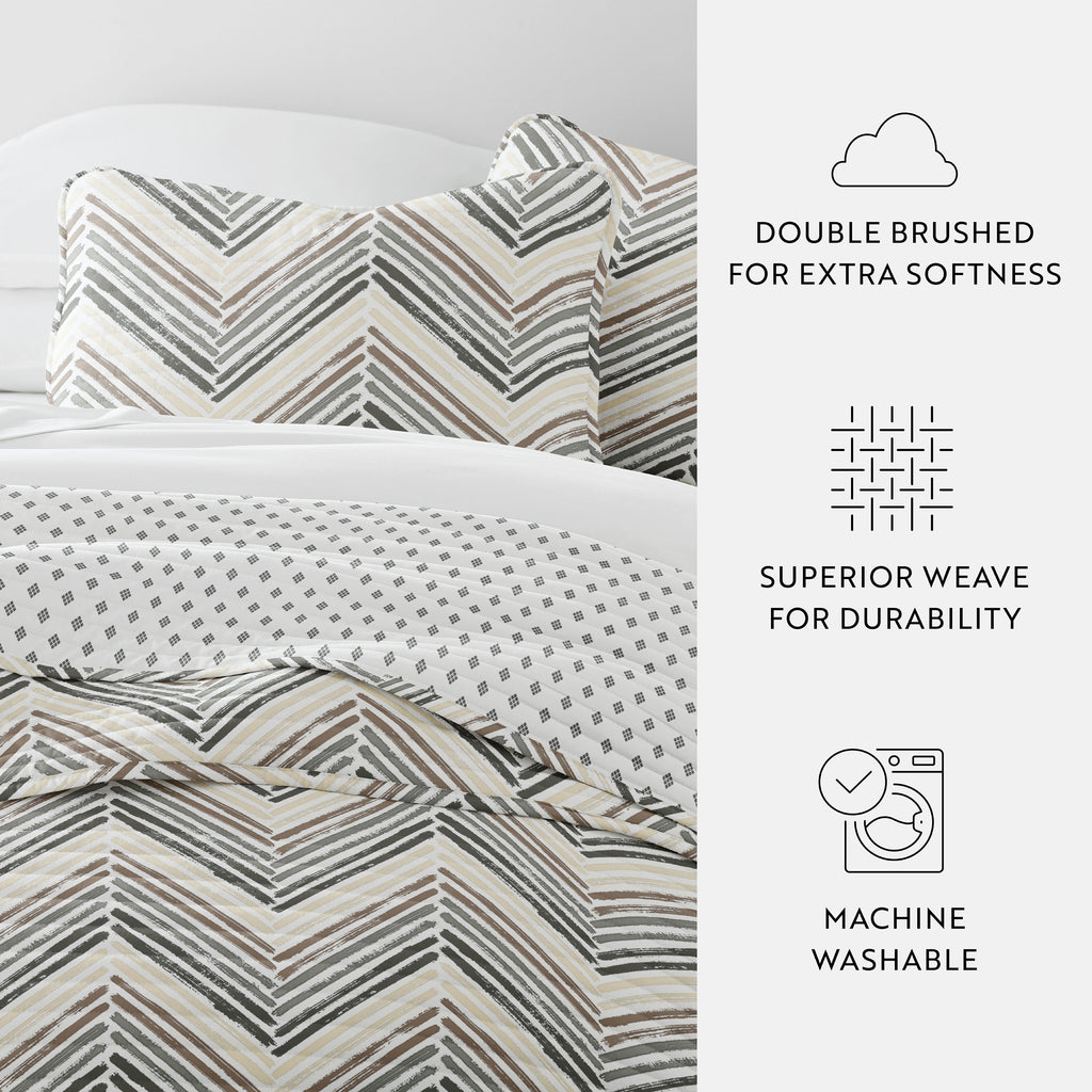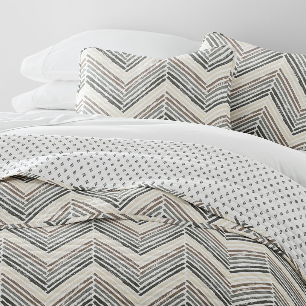 Painted Chevron Patterned Reversible Quilted Coverlet Set
