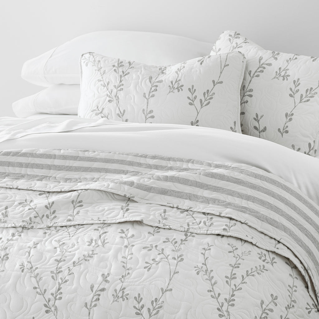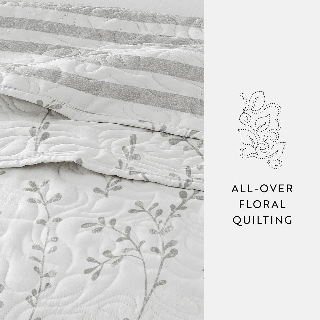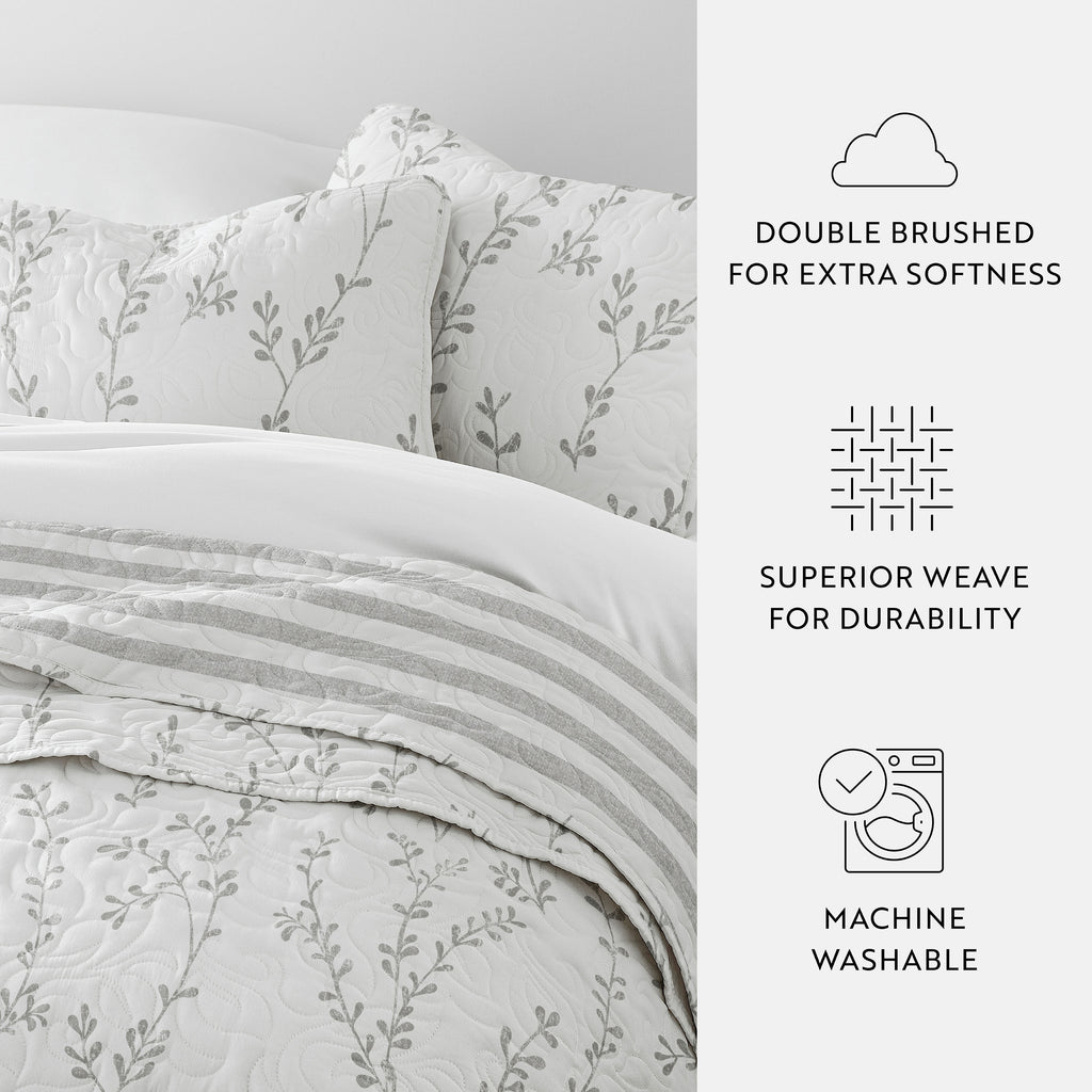 Sprouted Vines Patterned Reversible Quilted Coverlet Set
