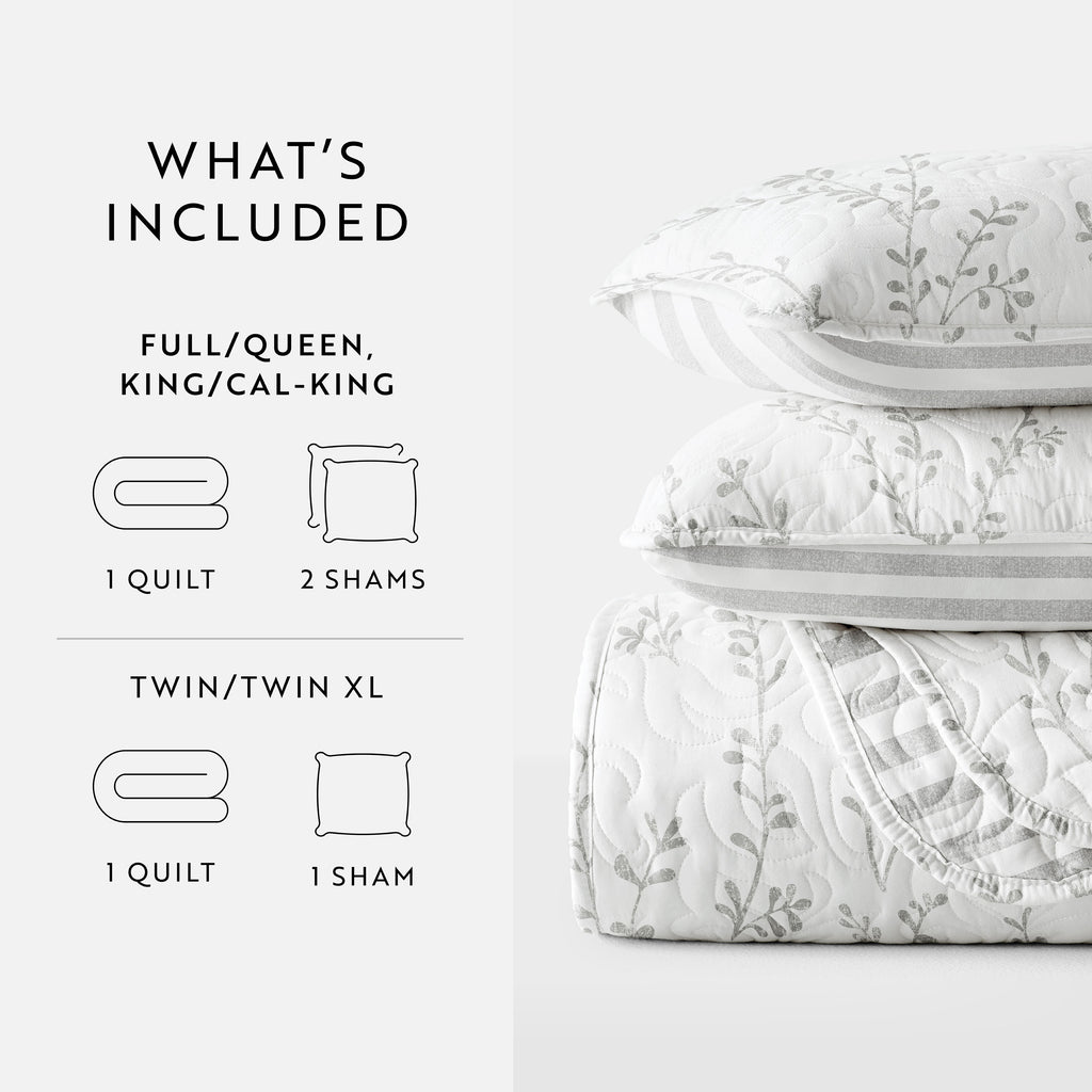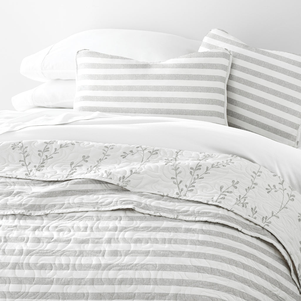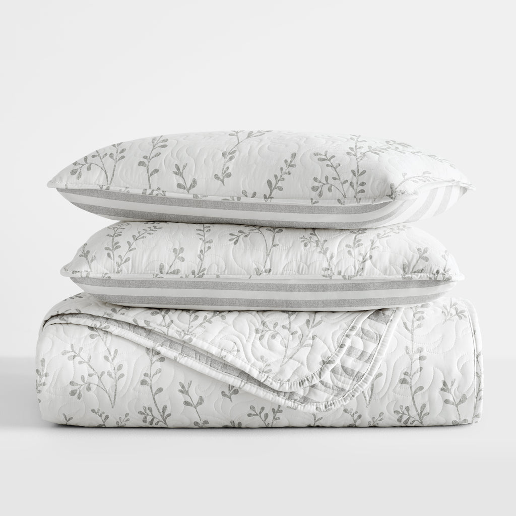 Sprouted Vines Patterned Reversible Quilted Coverlet Set