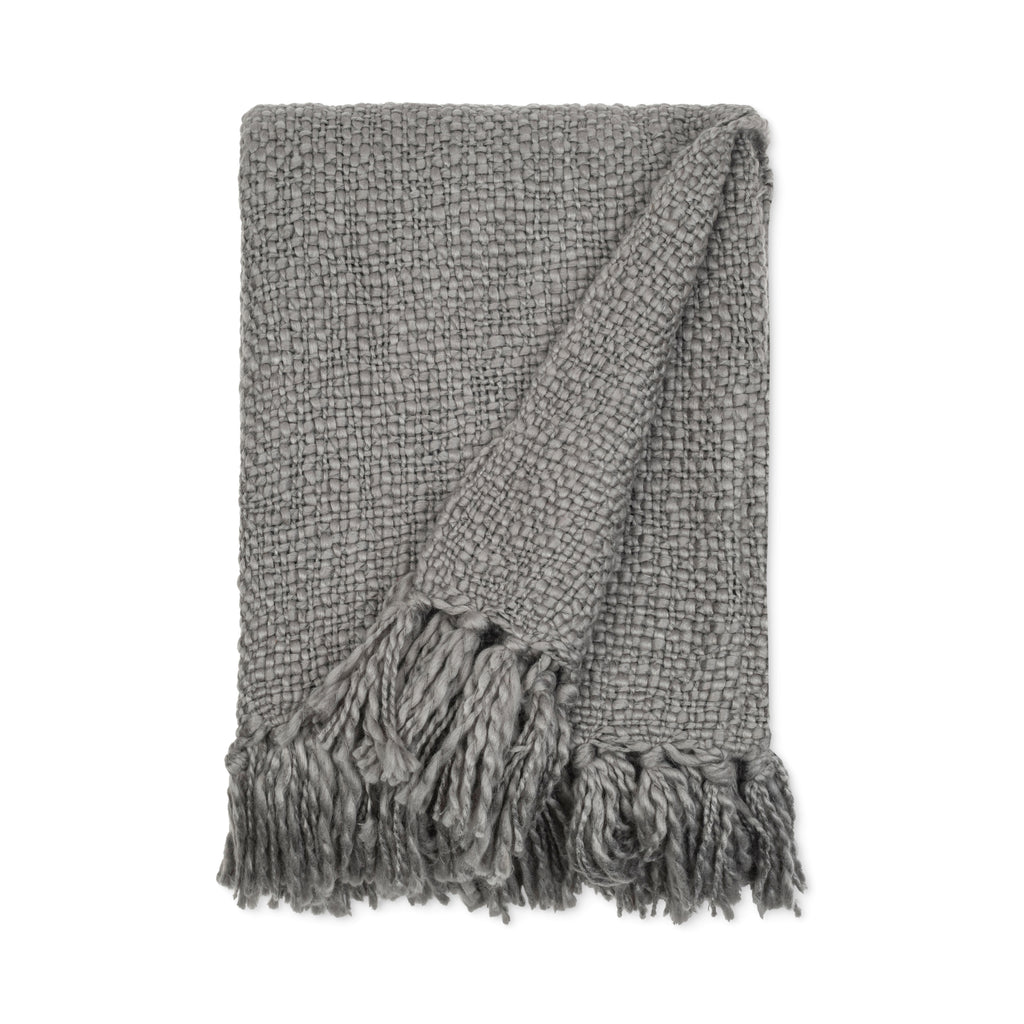Our solid basketweave throw's large scale texture and intriguing fringe are achieved by using ultra-soft yarns of varying thickness and slubs. The result is a medium weight knit throw that is extra cozy and oh-so-inviting. Perfect for a quick refresh of any space, or lounging around!