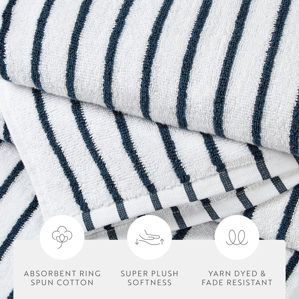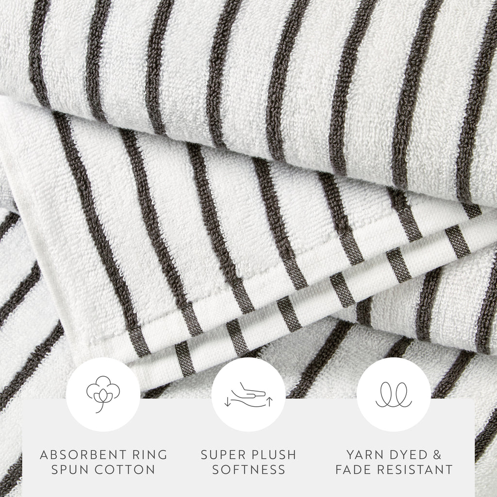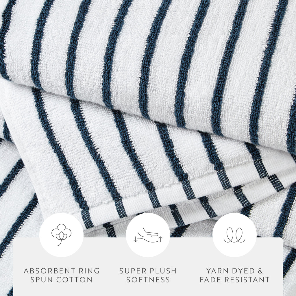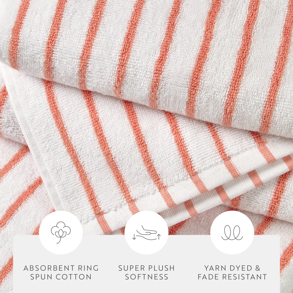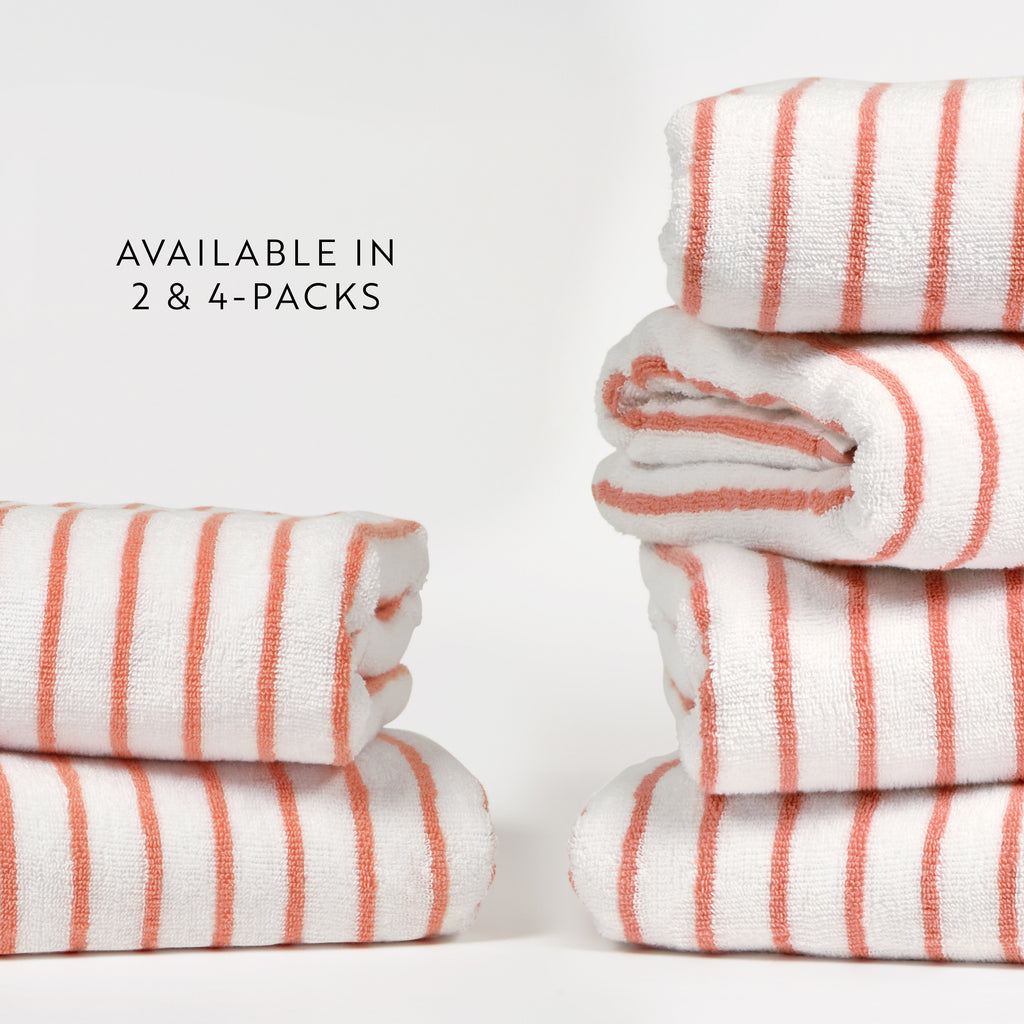 Elevate your beach experience with our Cabana Stripe Beach & Pool Towel Sets, crafted from 100% ring spun cotton with a luxurious weight of 450 GSM. These towels offer exceptional softness and absorbency. Perfect for lounging by the pool or soaking up the sun at the beach, our Cabana Beach Towels come in convenient packs of 2 or 4, ensuring you always have enough to share. Enjoy the perfect blend of comfort and style with these premium beach towels, designed to make your summer days even more enjoyable.