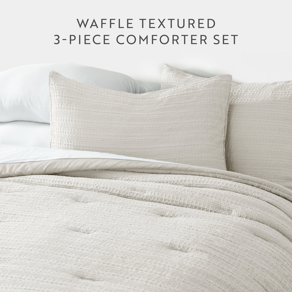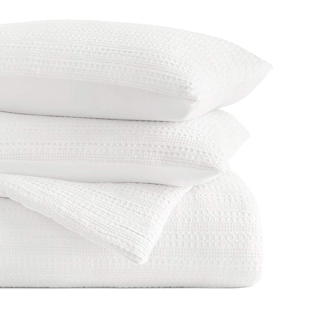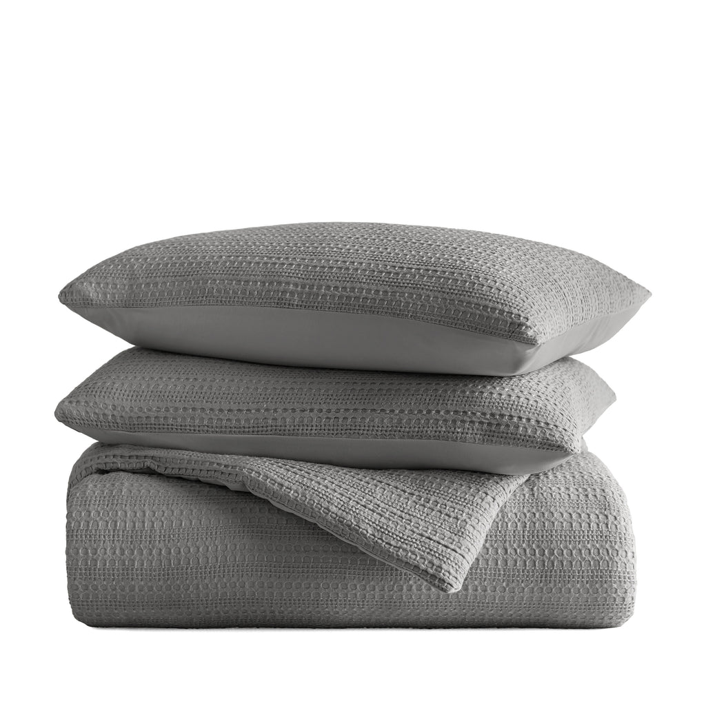 This set features an ultra-soft, double-brushed microfiber fabric with a pre-washed finish, offering a lived-in feel and exceptional softness your customers will appreciate. The elegant waffle texture adds subtle dimension, while the polyester fill ensures lightweight warmth year-round.