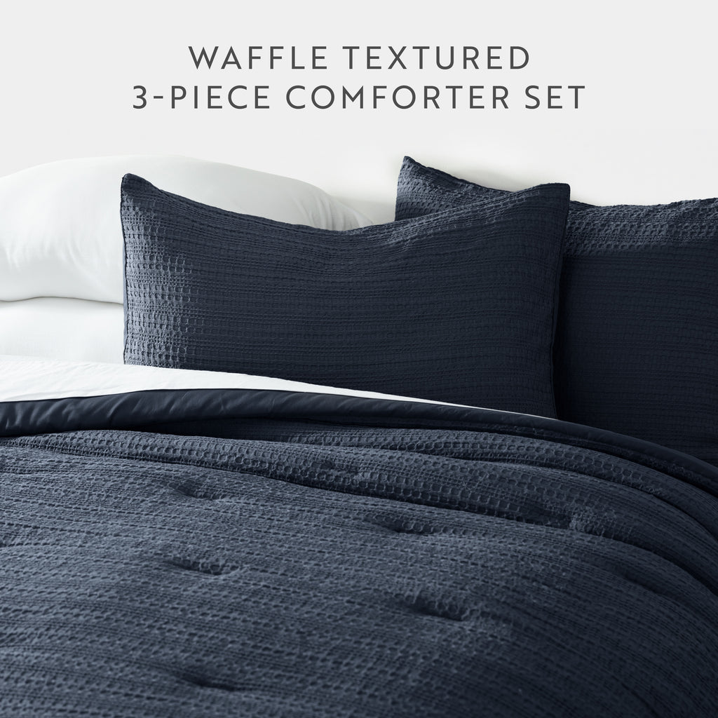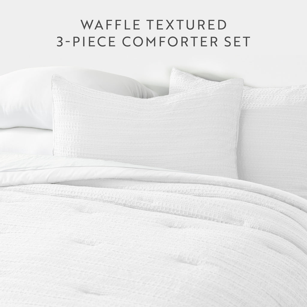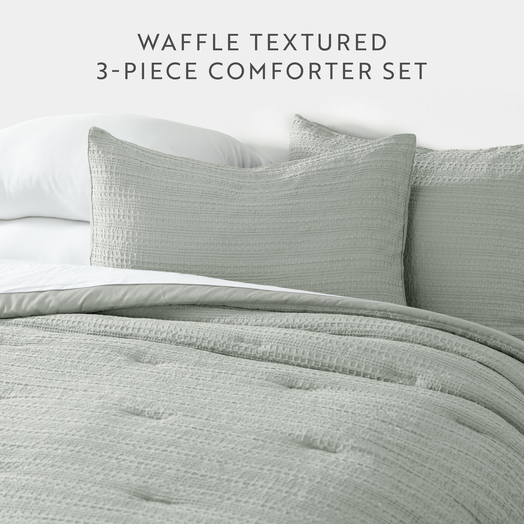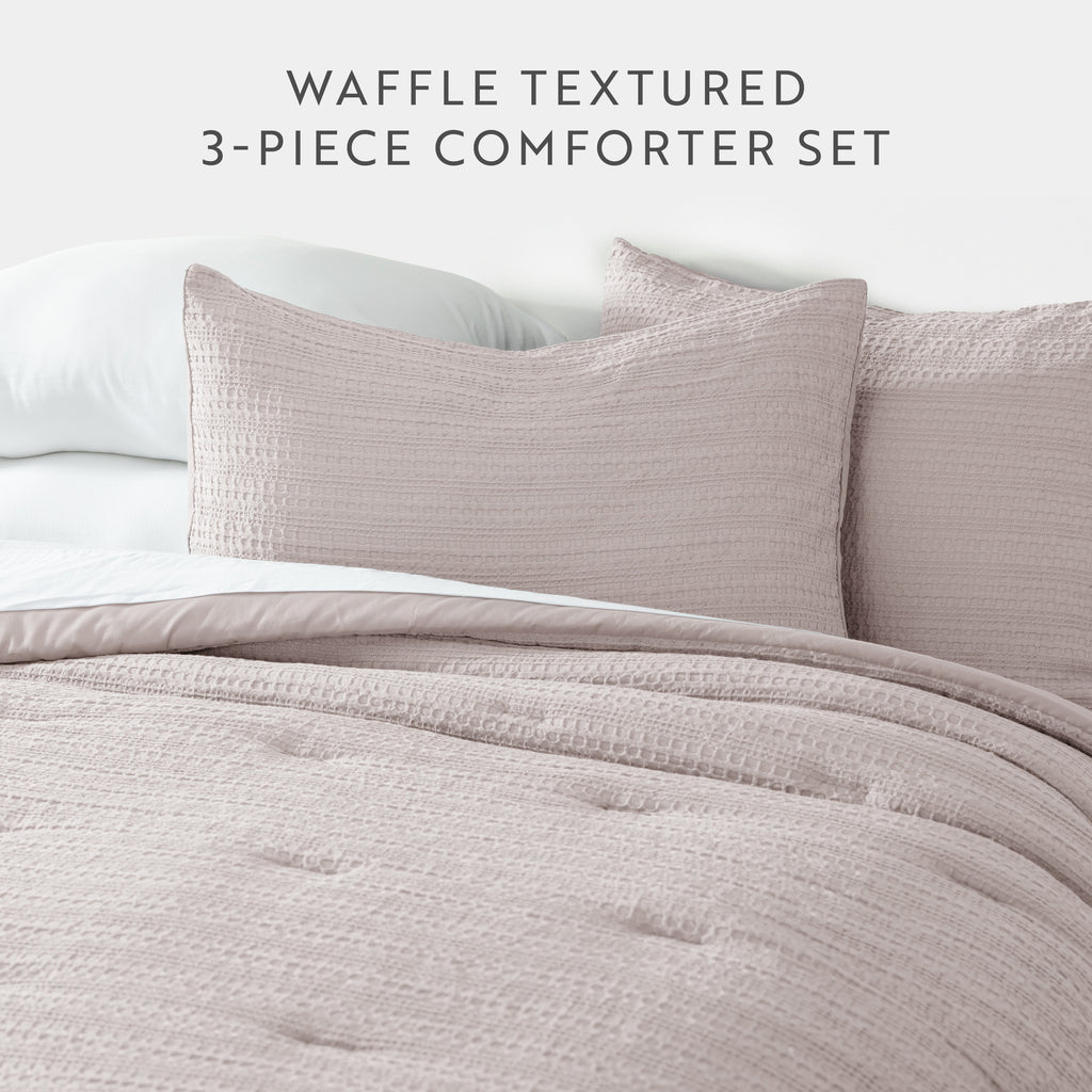 This set features an ultra-soft, double-brushed microfiber fabric with a pre-washed finish, offering a lived-in feel and exceptional softness your customers will appreciate. The elegant waffle texture adds subtle dimension, while the polyester fill ensures lightweight warmth year-round.